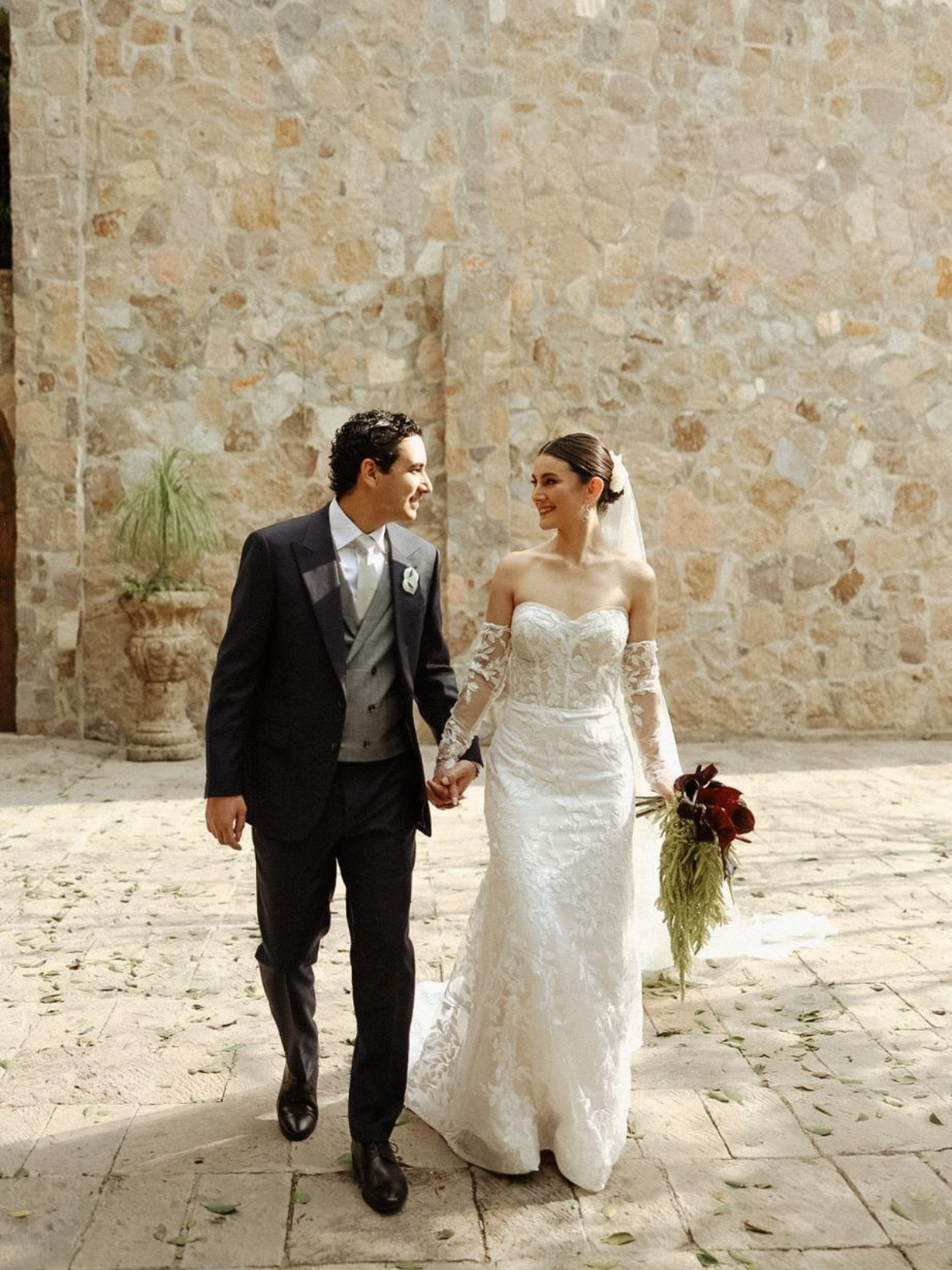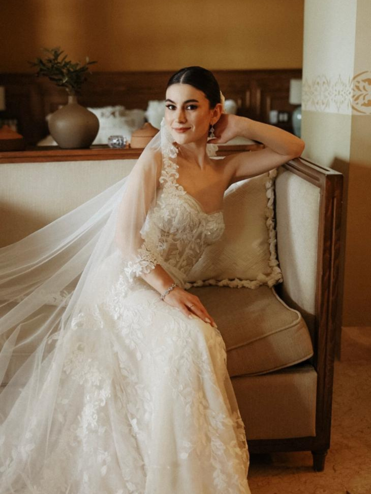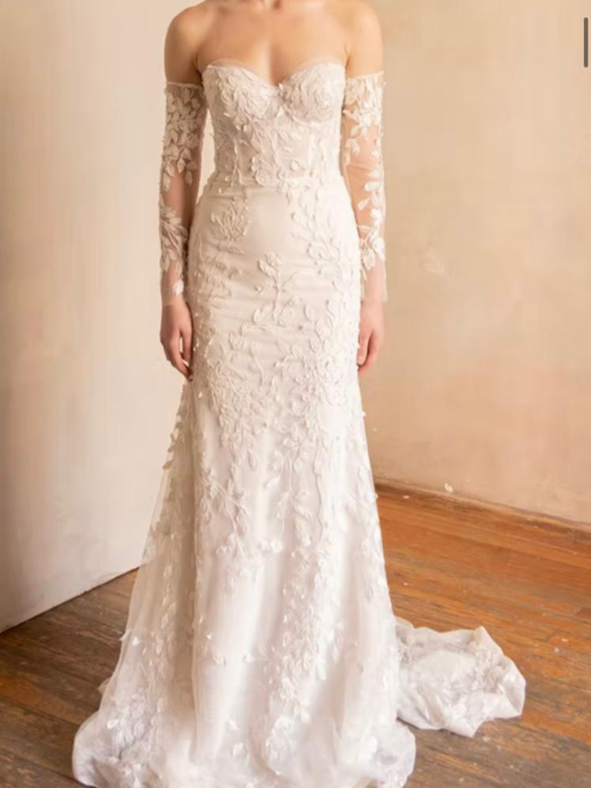 Hermoso vestido strapless de encaje. Tiene dos capas de encaje super bonito. Es demasiado cómodo, no se baja no se mueve para nada a pesar de ser strapless. Viene con unas mangas de encaje a juego con el vestido que te permiten darle versatilidad la vestido. Es un vestido súper cómodo que a la vez hace una figura super linda. Ya cuenta con servicio de tintorería y quedó como nuevo. Espero alguna novia pueda darle una segunda vida.
