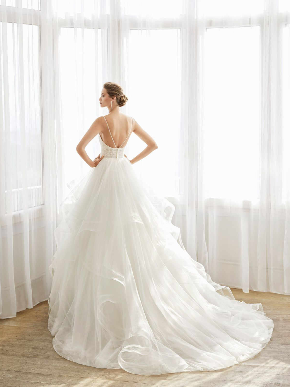 Vestido con corte de princesa. falda con volantes.