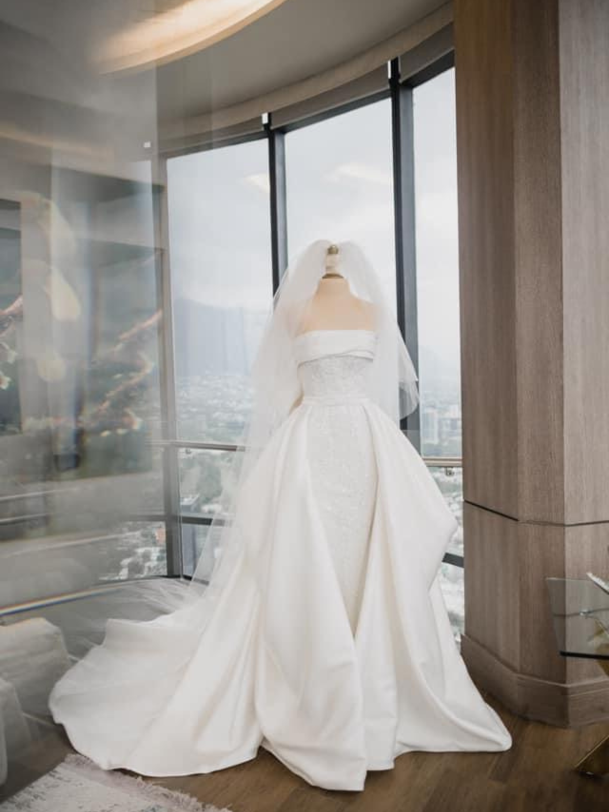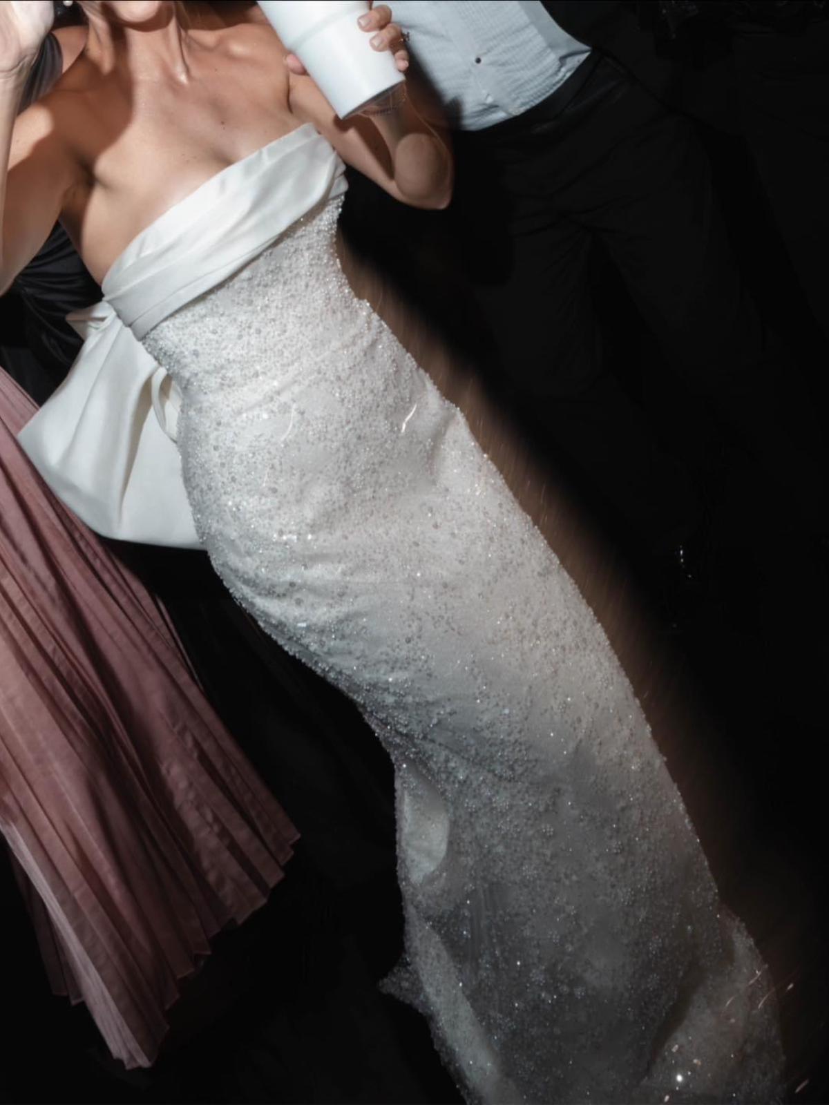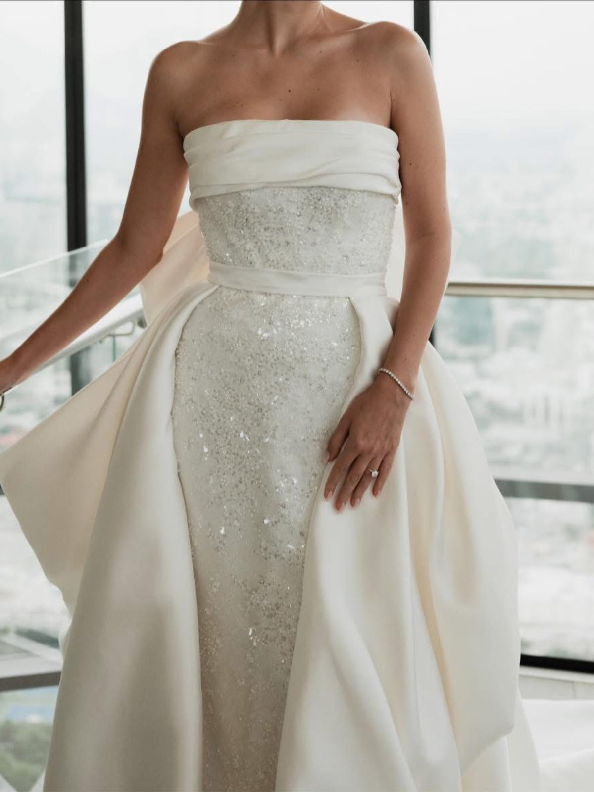 Hermoso vestido de novia, incluye cauda y moño que se pueden quitar para el vals o la fiesta de cualquier manera el vestido luce hermoso y muy elegante tiene un brillo espectacular!!!