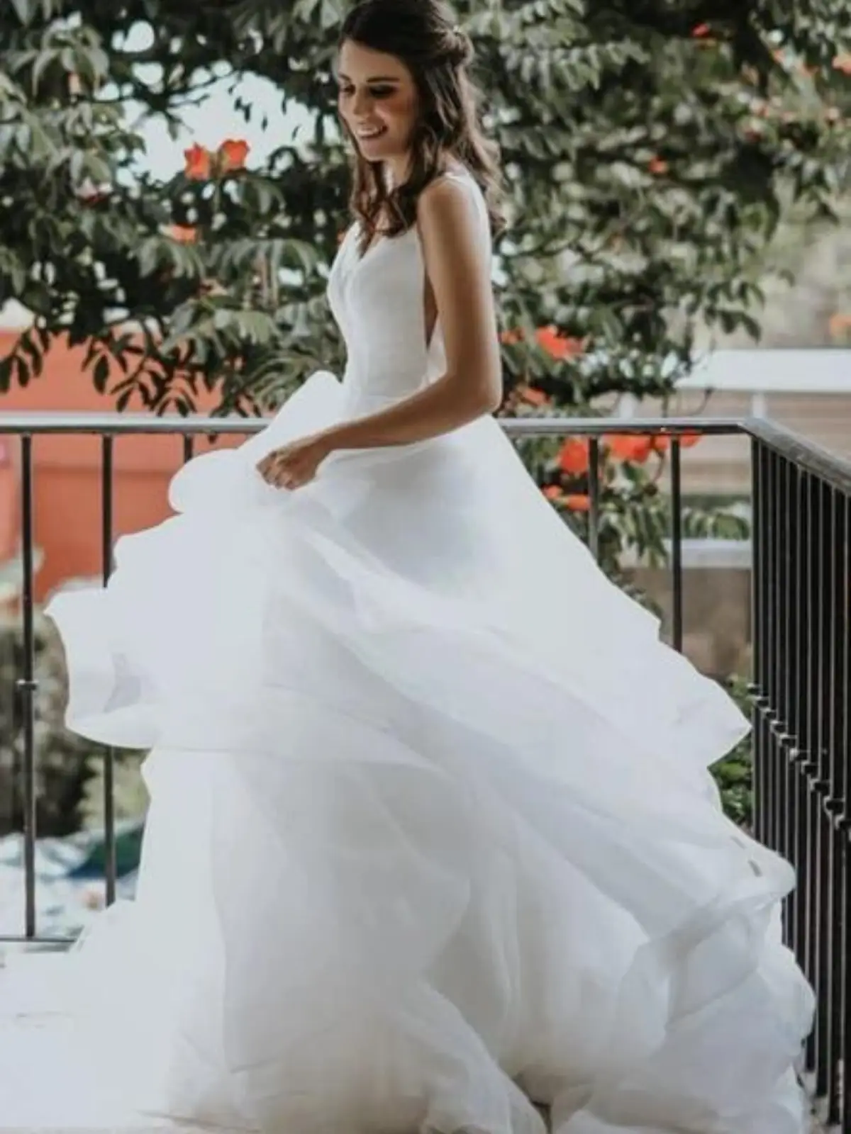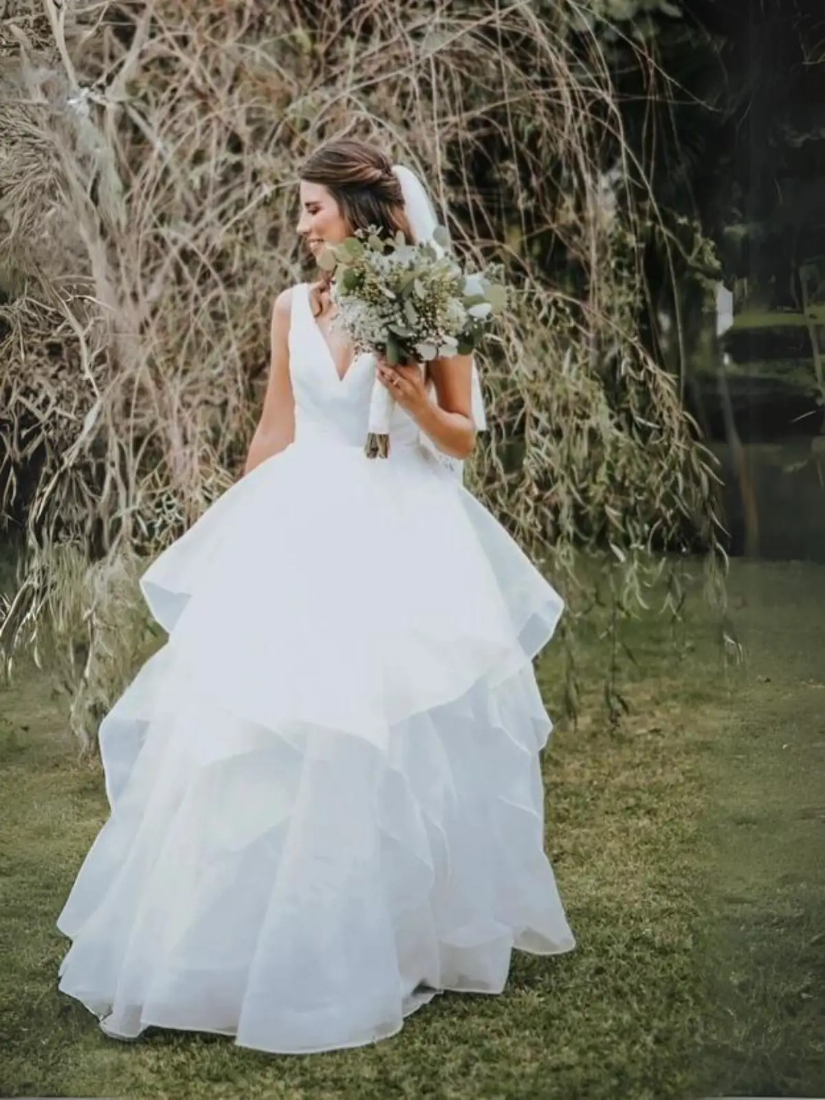 Muy comodo, el soporte esta en los hombros. No es caluroso. Se puede ampliar ya que los arreglos fueron unicamente hacerlo mas chico pero sin cortar, solo cosiendo. Se mando a tintoreria de novia.