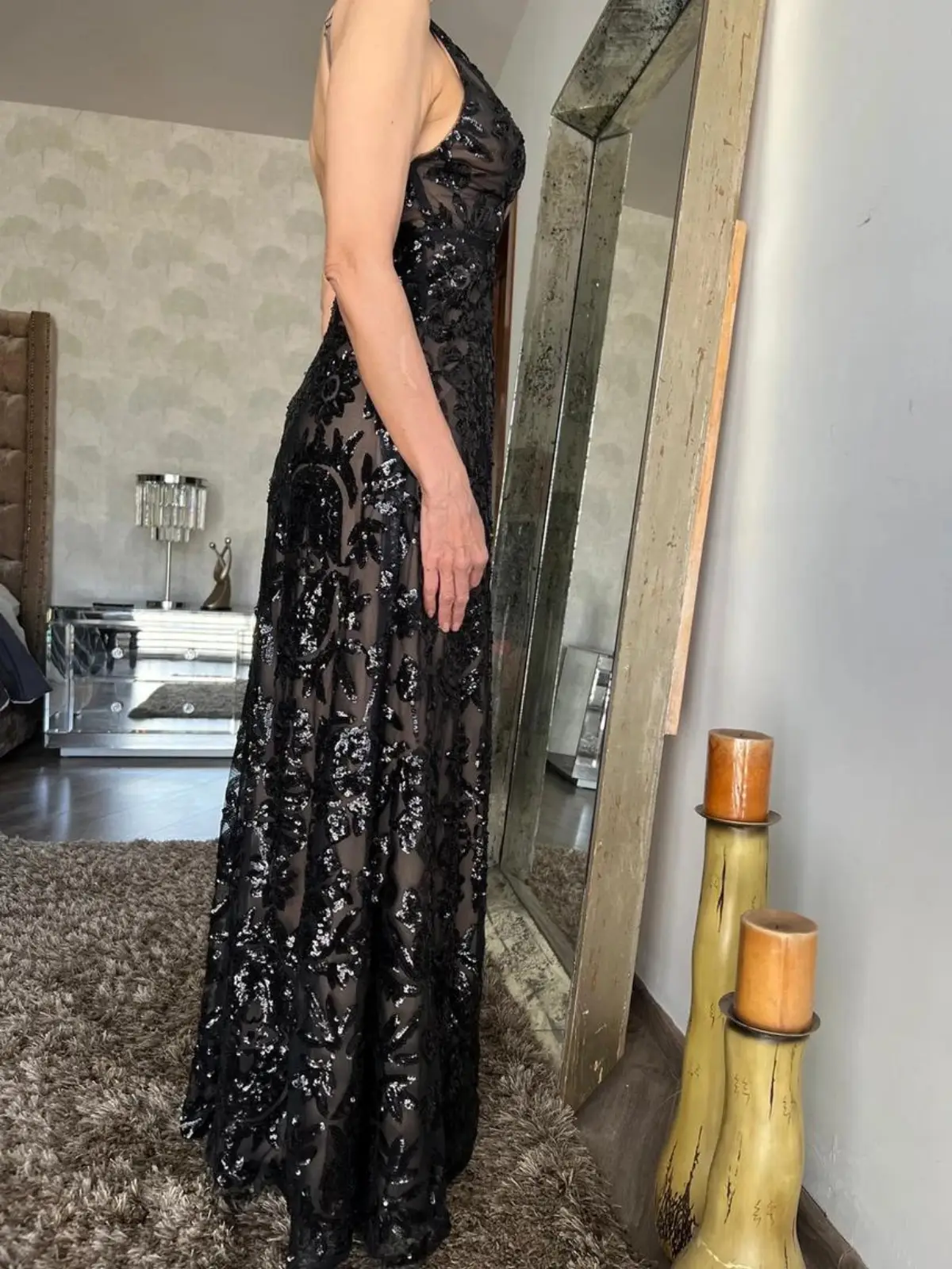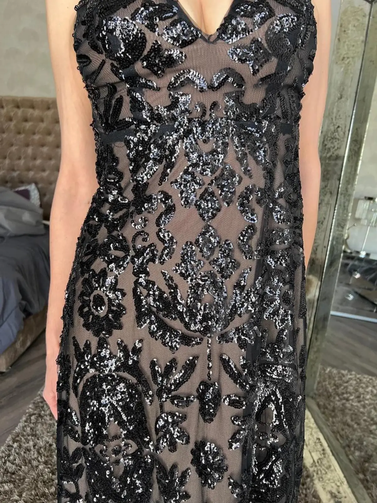 Vestido largo de lentejuelas Se ajusta con tirantes el escote Color negro