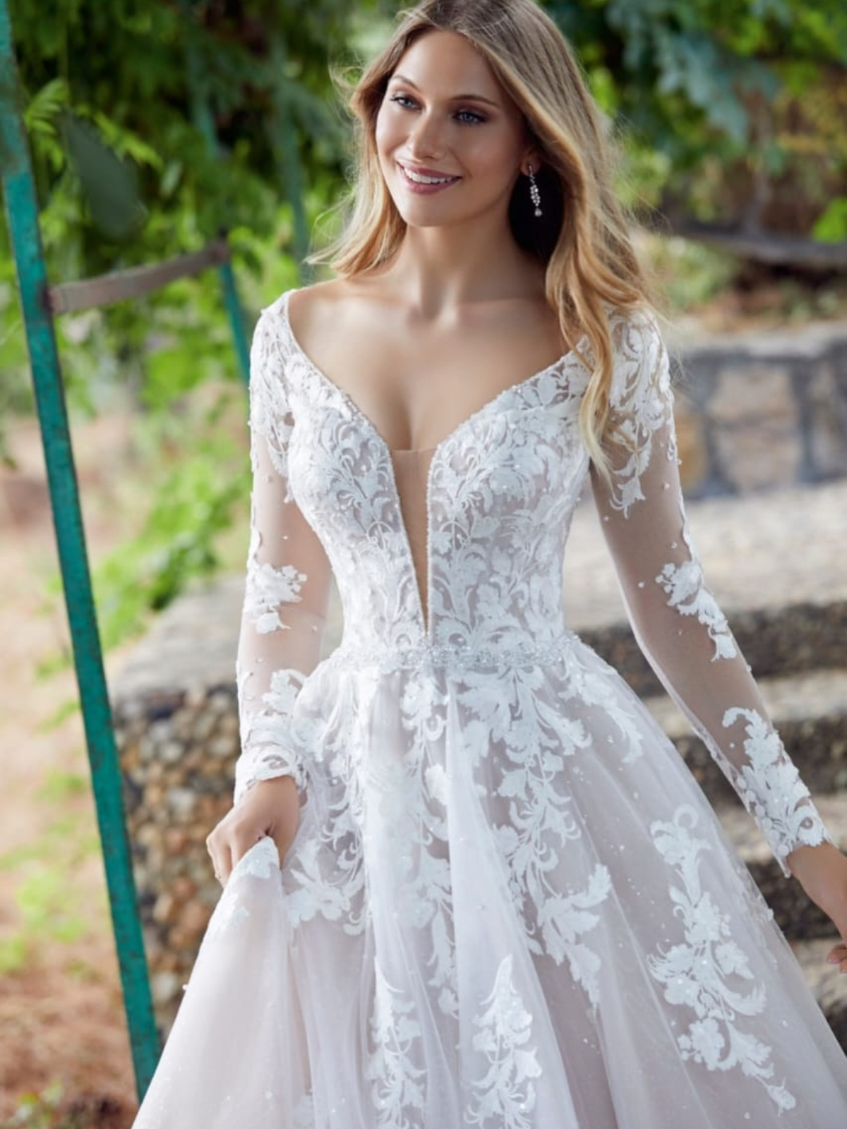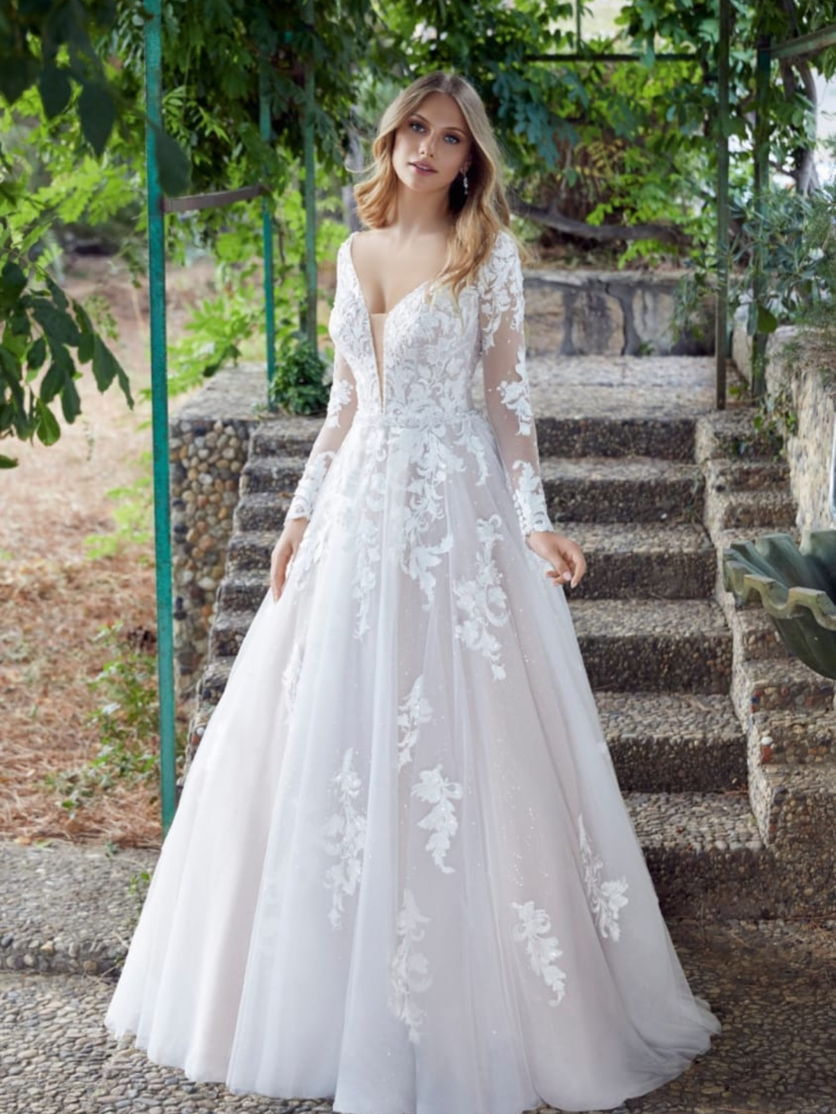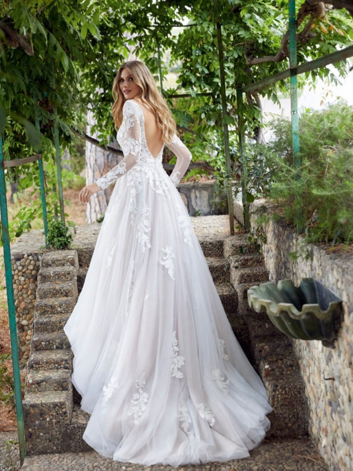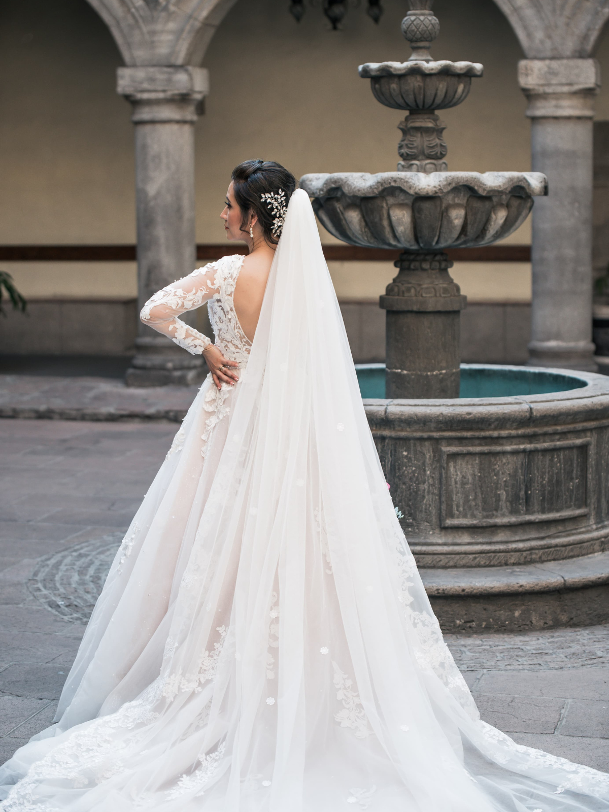 Hermoso vestido línea A color ivory, escote en V al frente y en la espalda, tiene una hermosa cola que puede recogerse. Muy ligero y cómodo. Inlcuye crinolina extra.