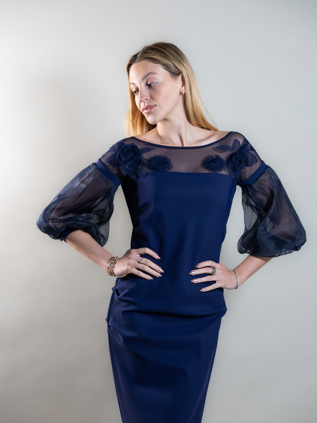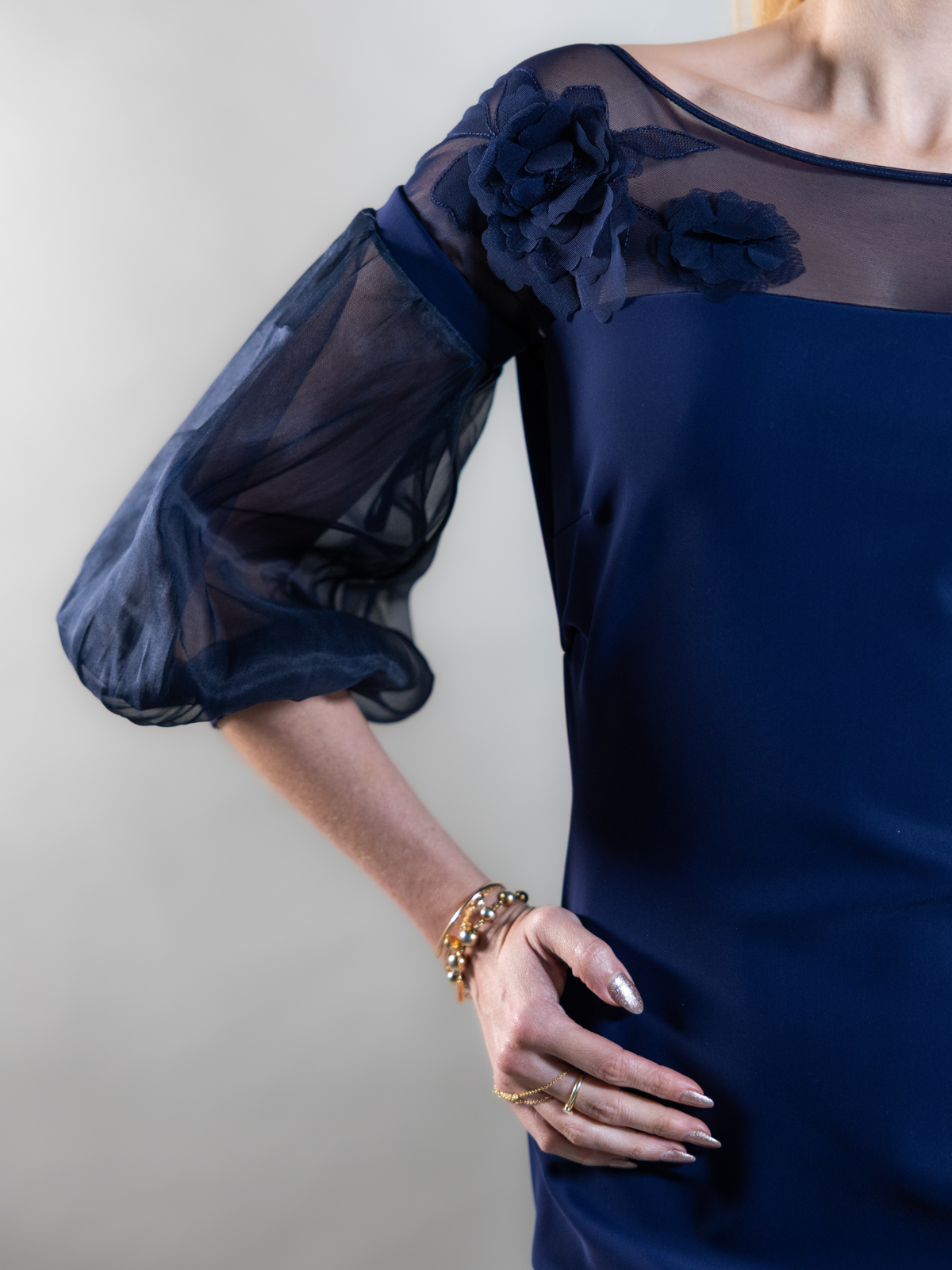 Precioso vestido azul marino con flores en 3D, super elegante y comodo.