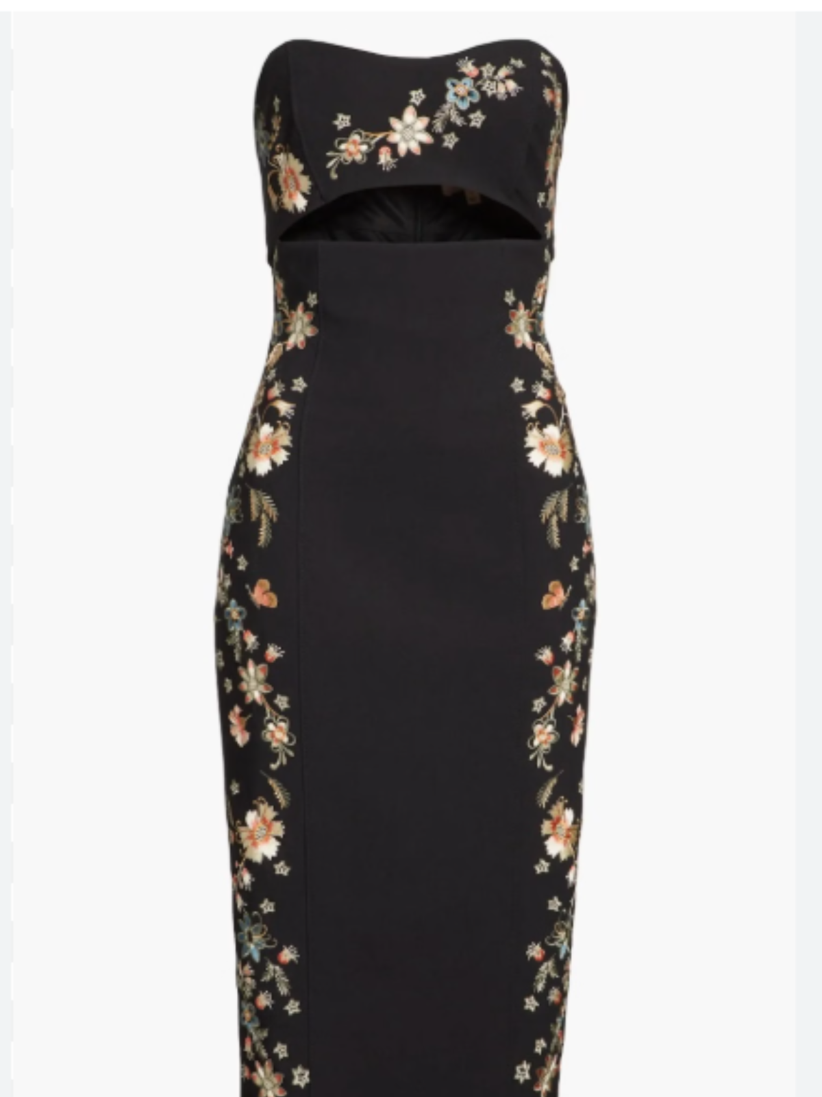 Hermoso vestido negro 3/4, strapless con bordados de flores. muy hermoso