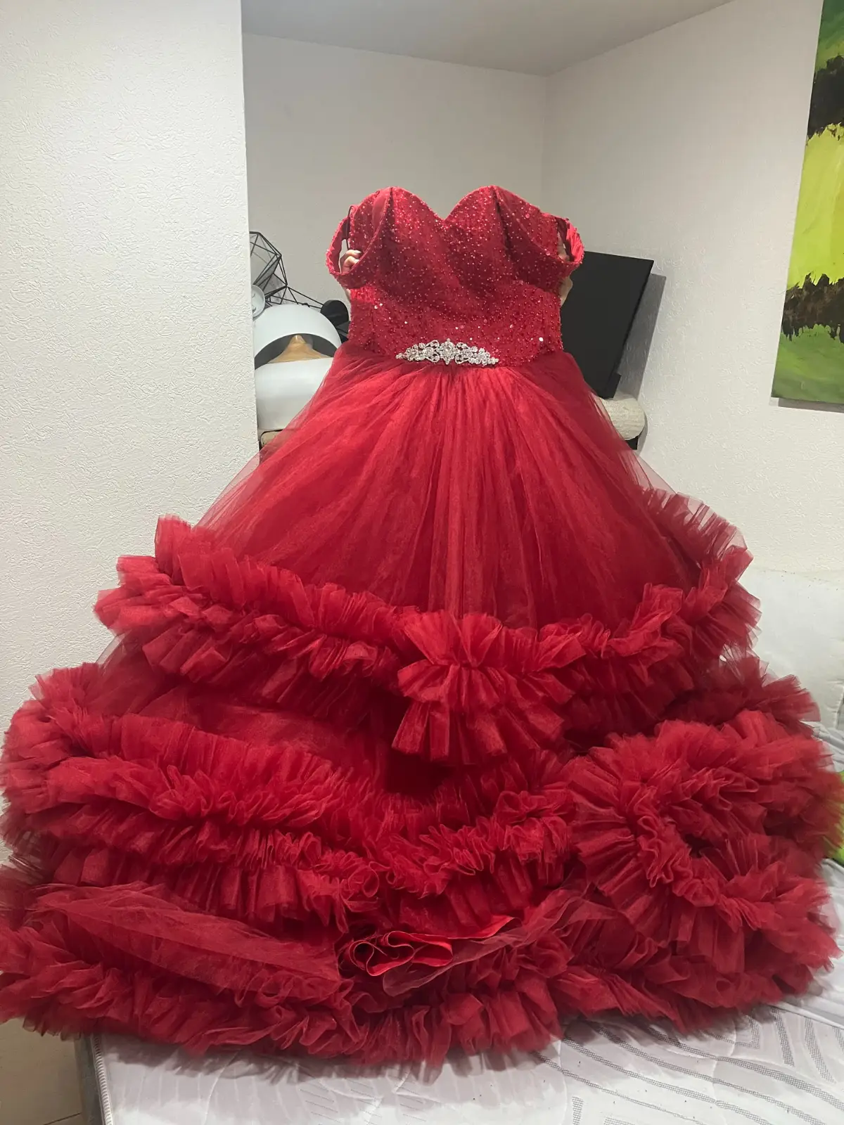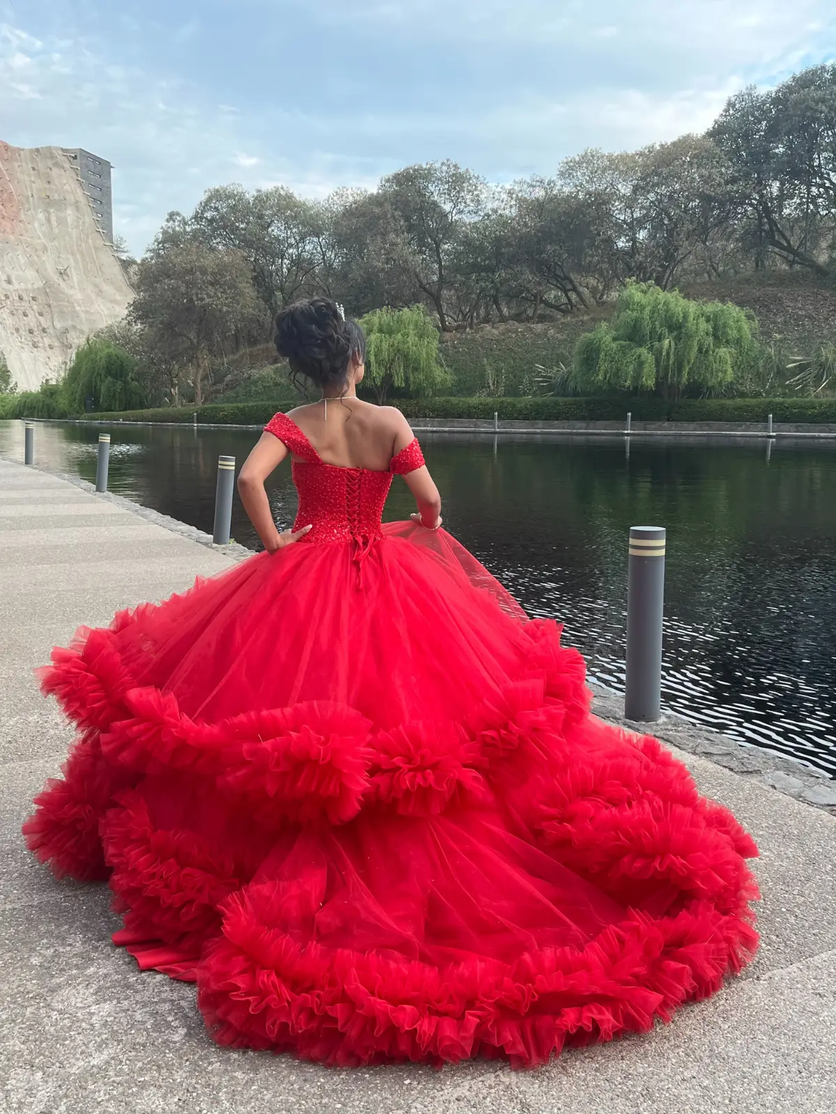 Vestido de XV años con cauda en perfecto estado, con solo 1 uso. Incluye pedreria en cintura y crinolina flexible.