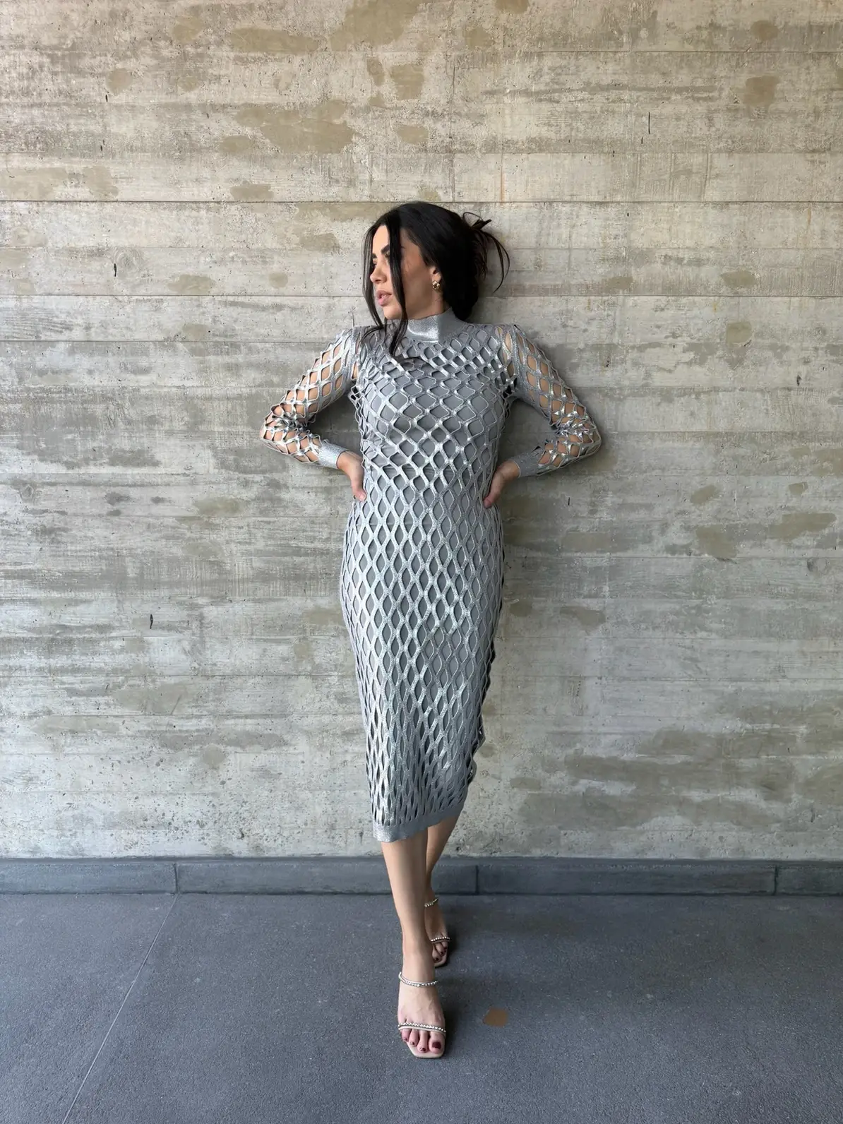Increible vestido plateado tipo red, hace un super cuerpo.