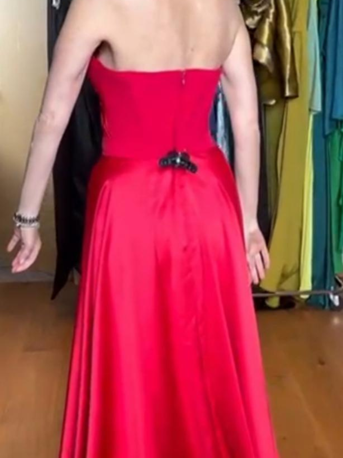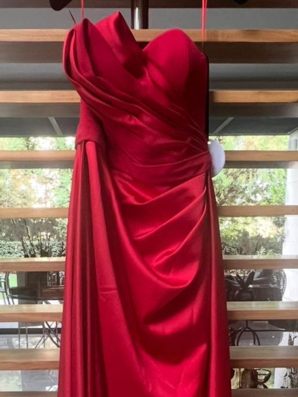 ES UN VESTIDO NUEVO, HERMOSO TONO ROJO IDEAL PARA BODA, CON FRENTE DESIGUAL Y ESTILO DE COLA TRASERA