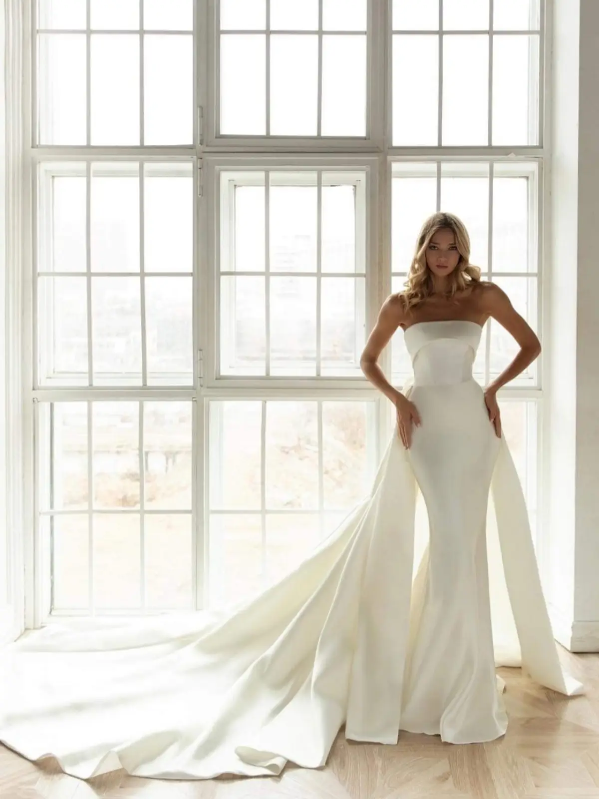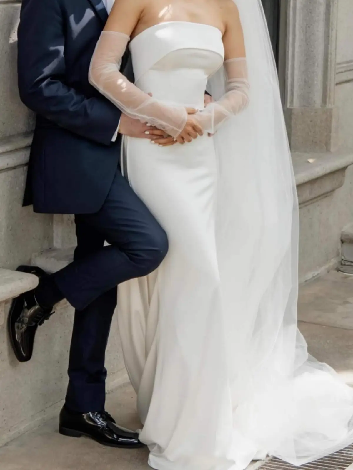 Hermoso vestido corte sirena NUEVO sin ajustes ni detalles , cauda y moño desmontables .