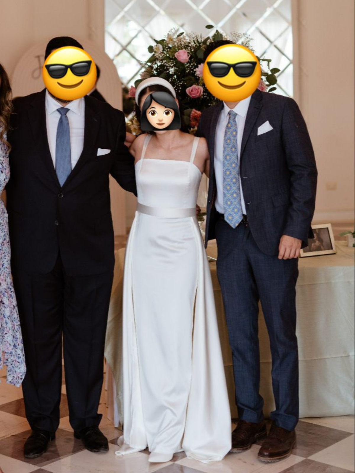 ES UN VESTIDO HERMOSO DE UN SOLO USO, HECHO A MANO POR UNA EXCELENTE DISEÑADORA, CON TELA MUY FINA. LA DIADEMA ES DE LA MISMA TELA. EN EXCELENTES CONDICIONES. MUY COMODO.