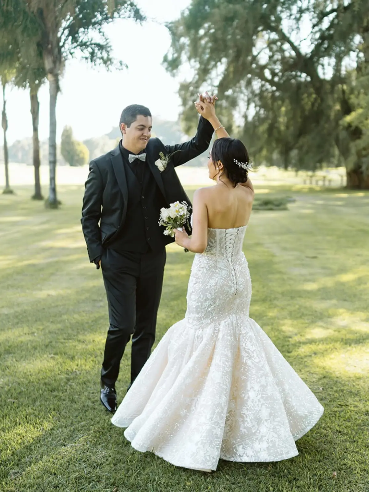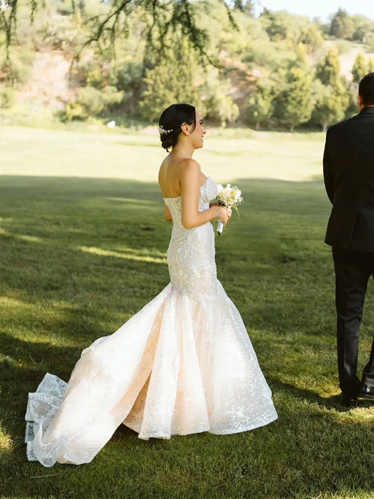 Vestido de novia color ivory. Cuenta con personalización en cauda para que puedas lucir 2 vestidos en uno. Al retirar la cauda queda perfecto para bailar toda la noche sin necesidad de estar cargando con la cauda.