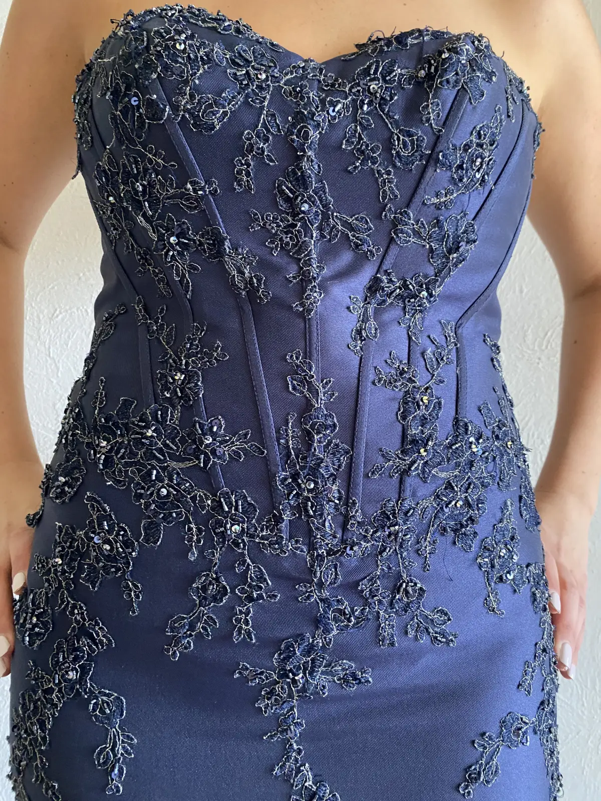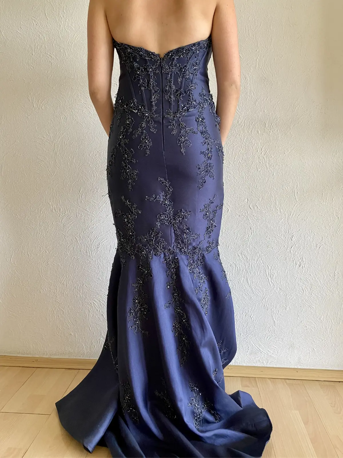 Marino corte de sirena. Bordado y aplicaciones a mano Con corset y barilla por dentro