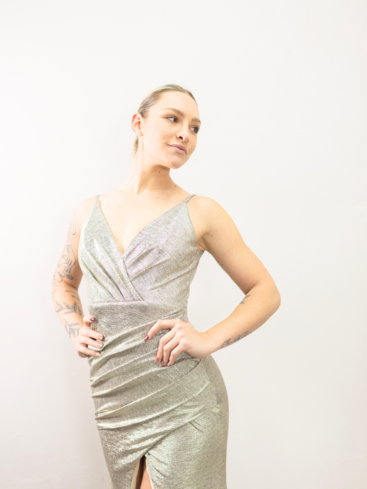 Hermoso vestido dorado con la pierna abierta super comodo y sexy