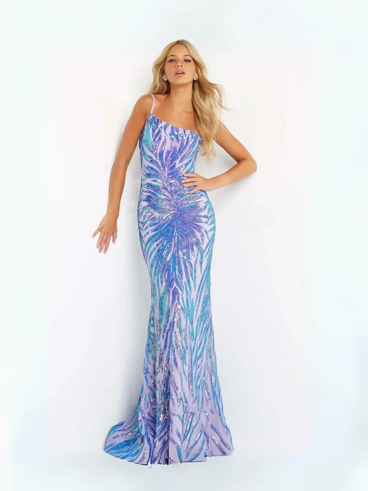 Color azul tornasol de un solo hombro