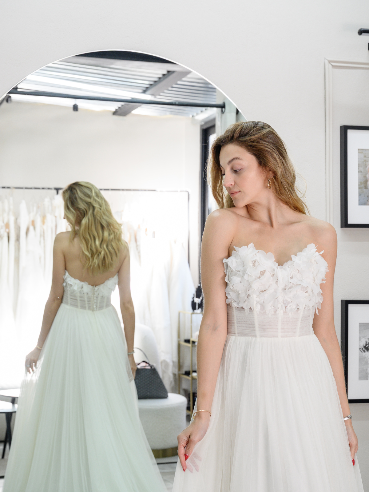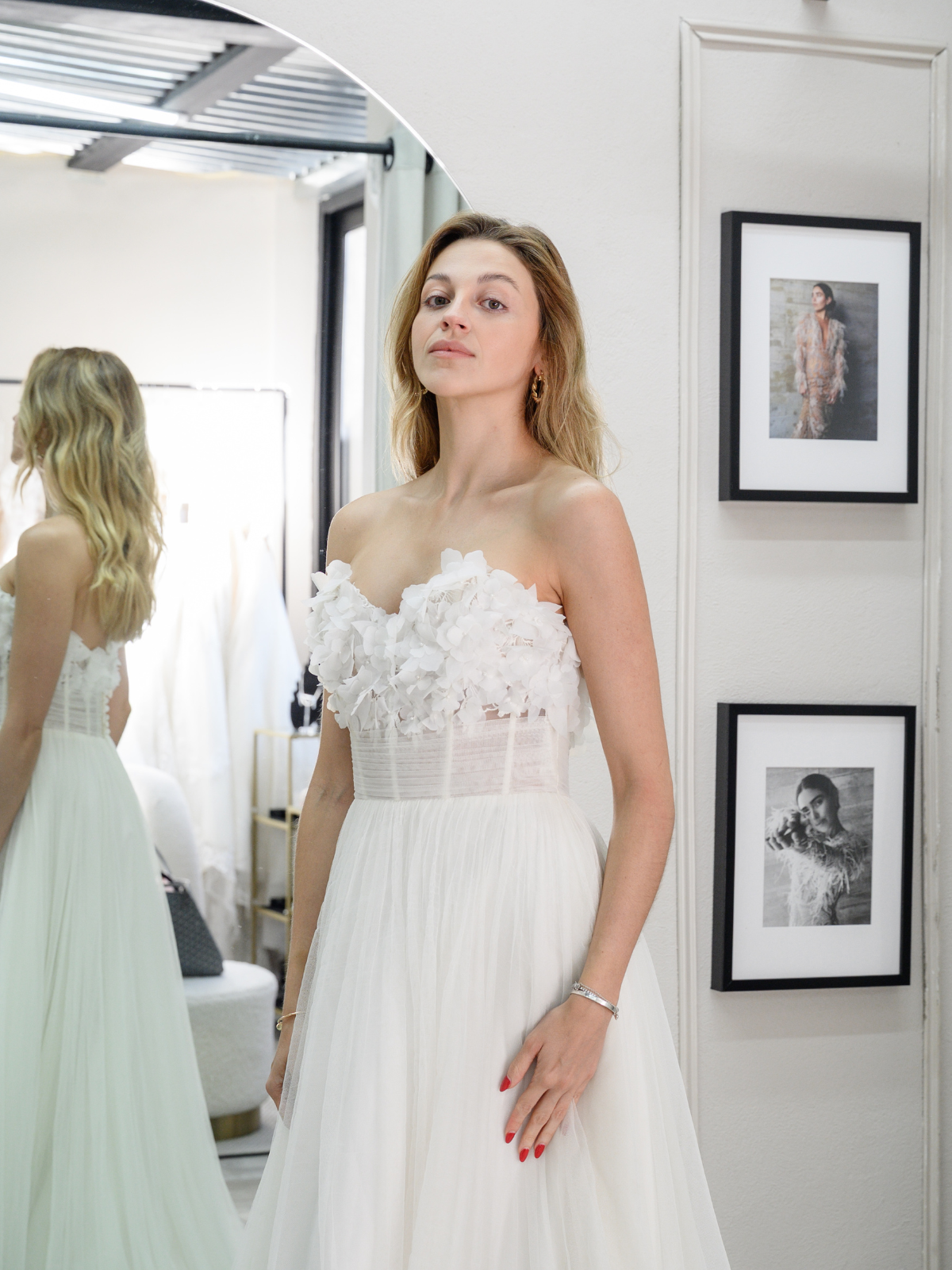 Hermoso vestido NUEVO, strapless con flores en 3D.