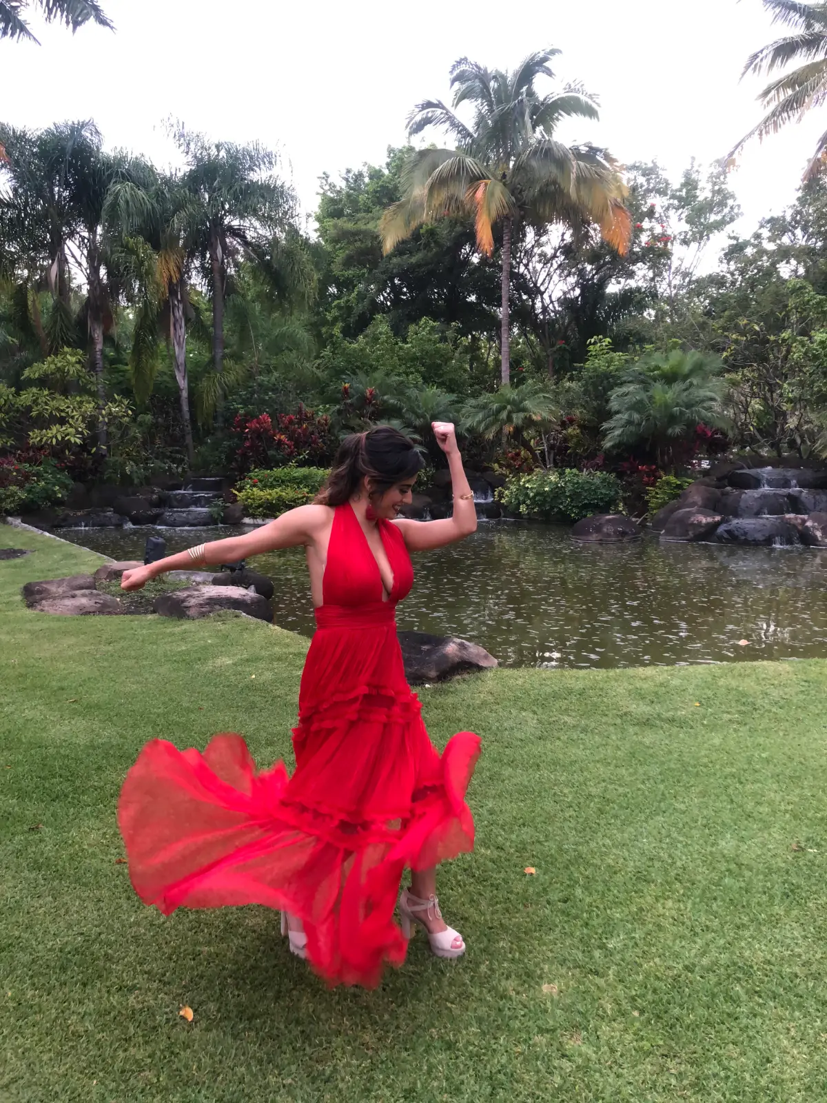 Vestido vaporoso, halter con escote y copas
