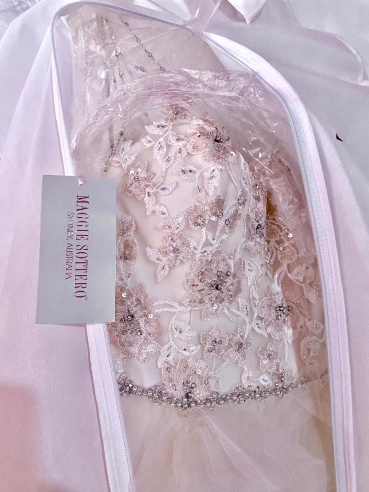 EL VESTIDO, es talla 6, no tiene ninguna modificación ni arreglo (por lo cual se puede ajustar a la medida exacta), viene tal cual lo enviaron, es un vestido de la diseñadora australiana MAGGIE SOTTERO modelo Carlota, es color ivory champagne con incrustaciones de cristal en la parte superior, viene con velo color champagne de 3×3.5m de largo.