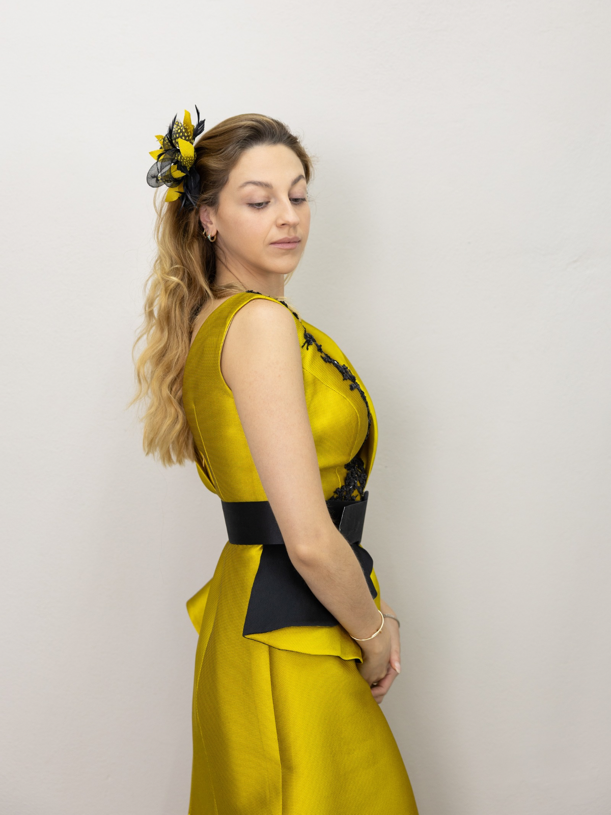 Precioso vestido dorado viejo con negro para cualquier evento, tiene para recoger cauda e incluye tocado
