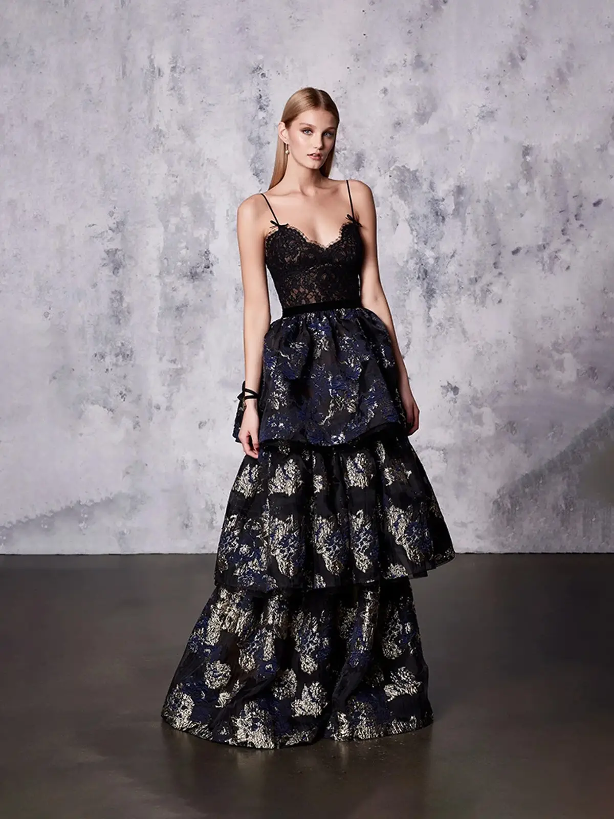 Vestido con encaje negro en la parte de arriba y capas en la parte de abajo, muy cómodo queda súper y muy elegante