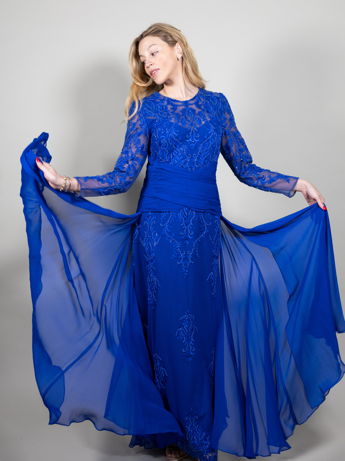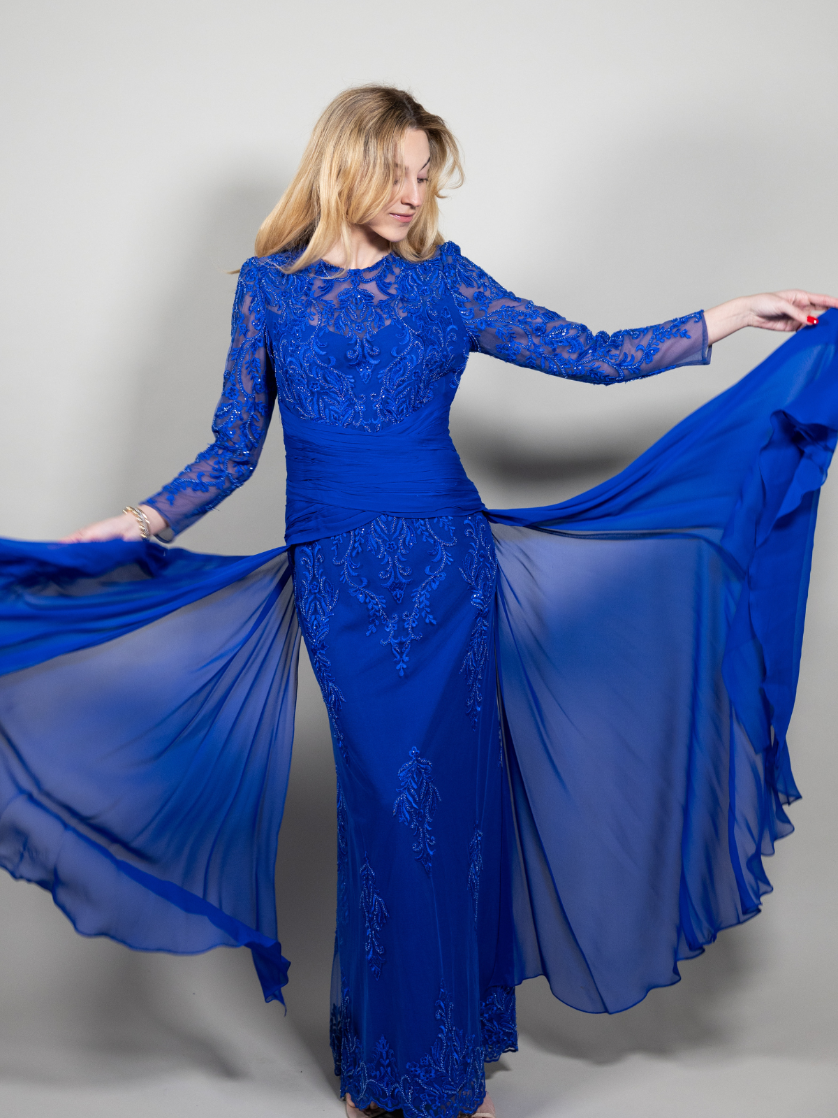 Precioso vestido color azul, formal.