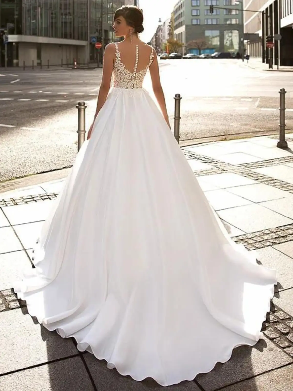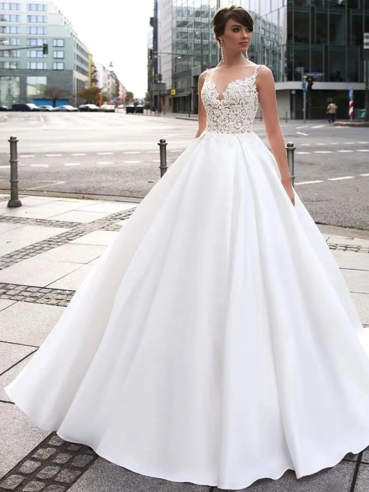 Vestido princesa, falda en Tul, talle bordado en pedrería y flores 3D. Color Ivory.