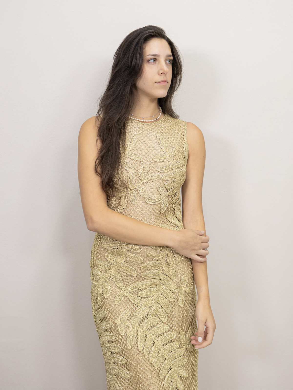 Hermoso vestido tejido dorado, es precio 3/4.