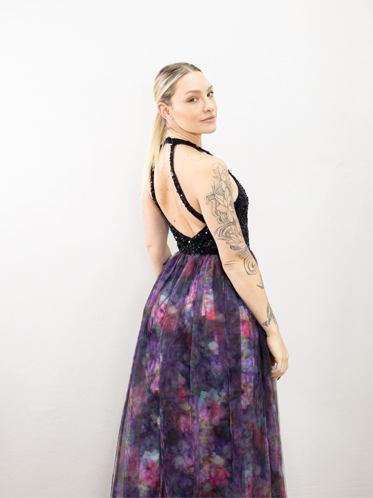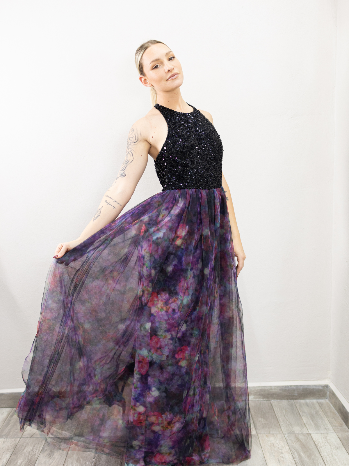 Hermoso vestido halter con colores en la falda, hermoso para boda de dia o de noche