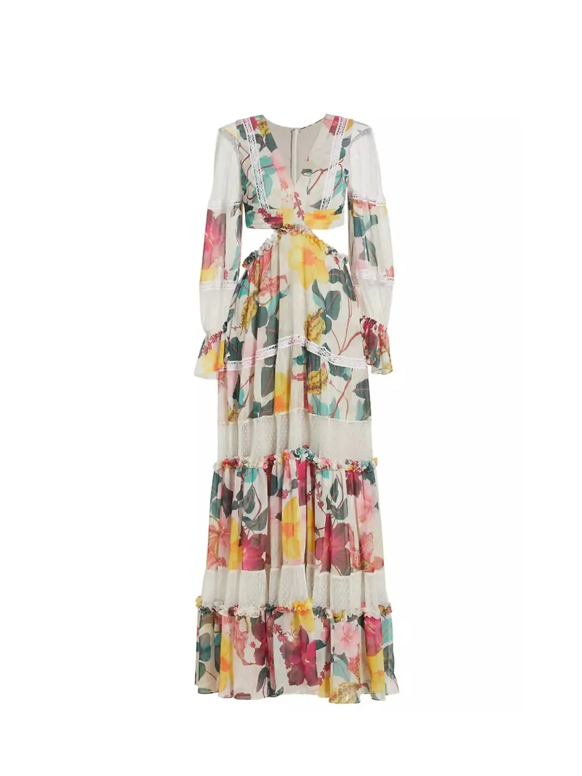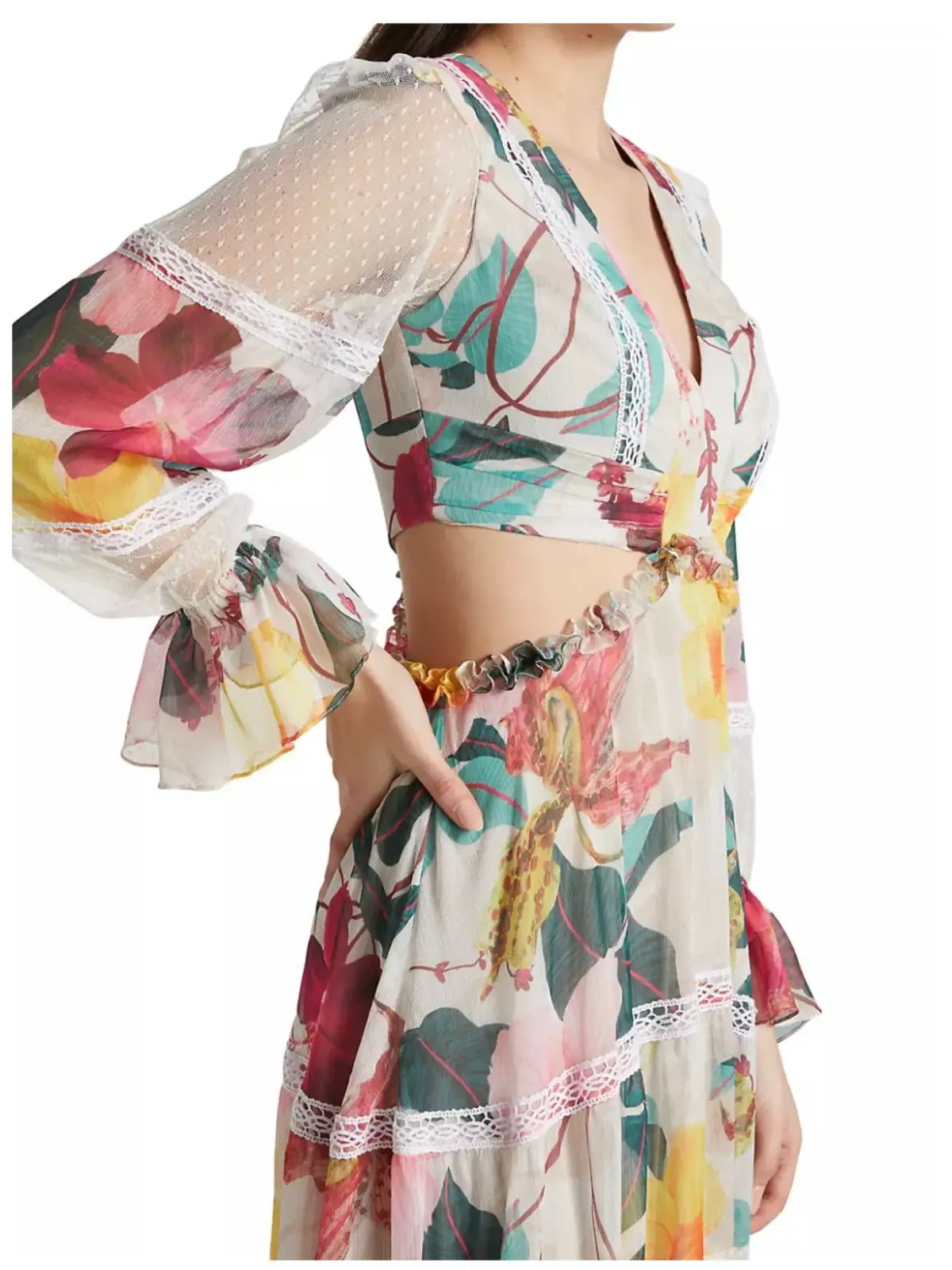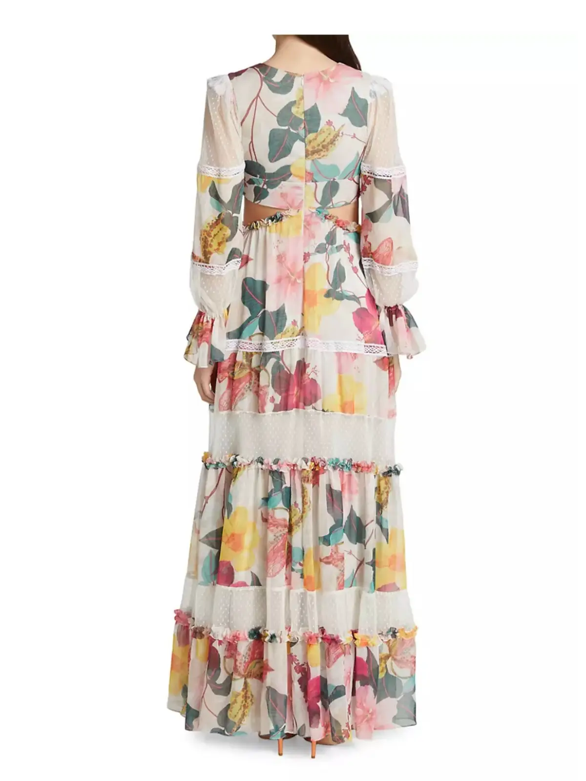 Hibiscus Lace-Trimmed Cutout Maxi Dress