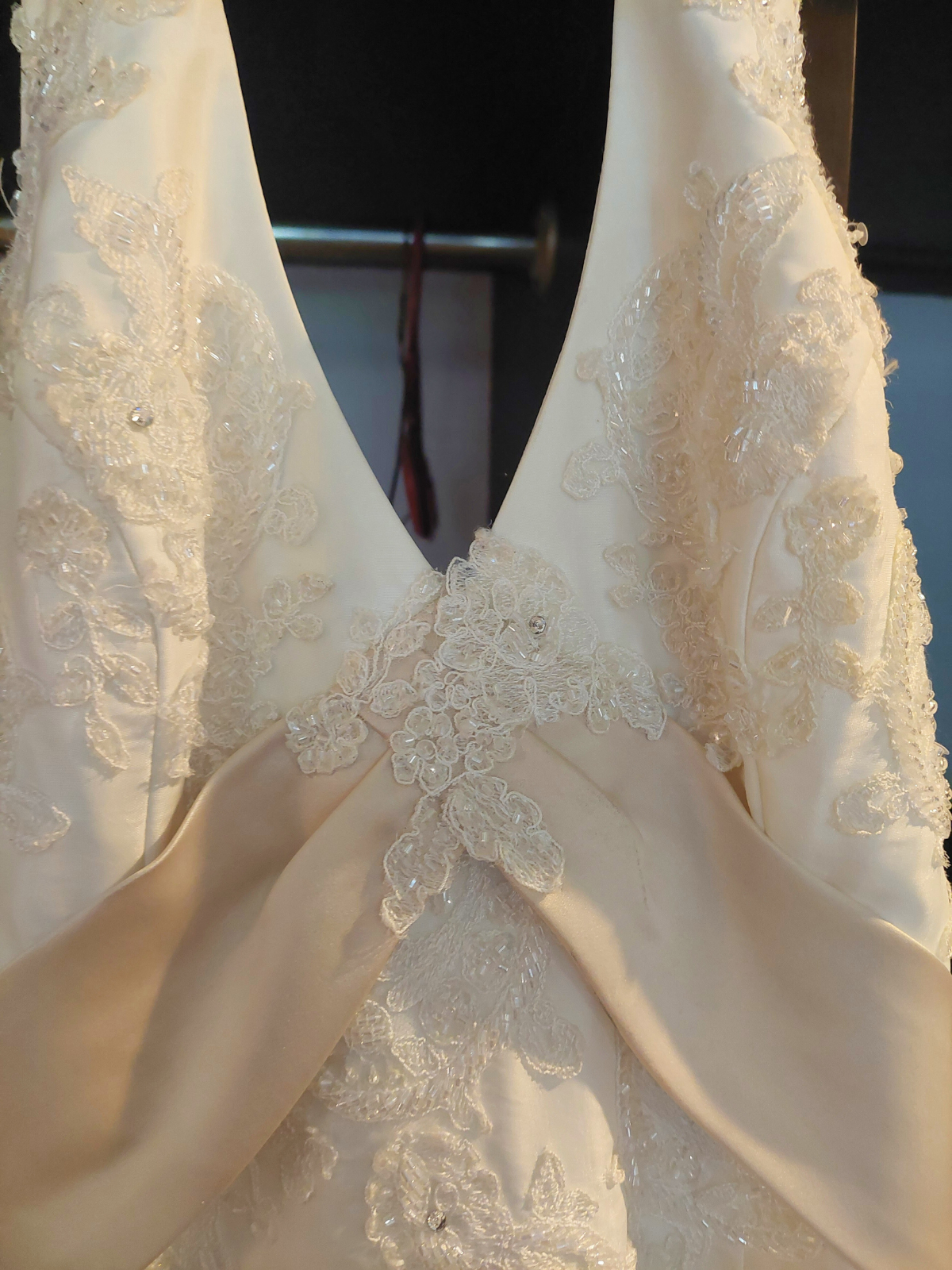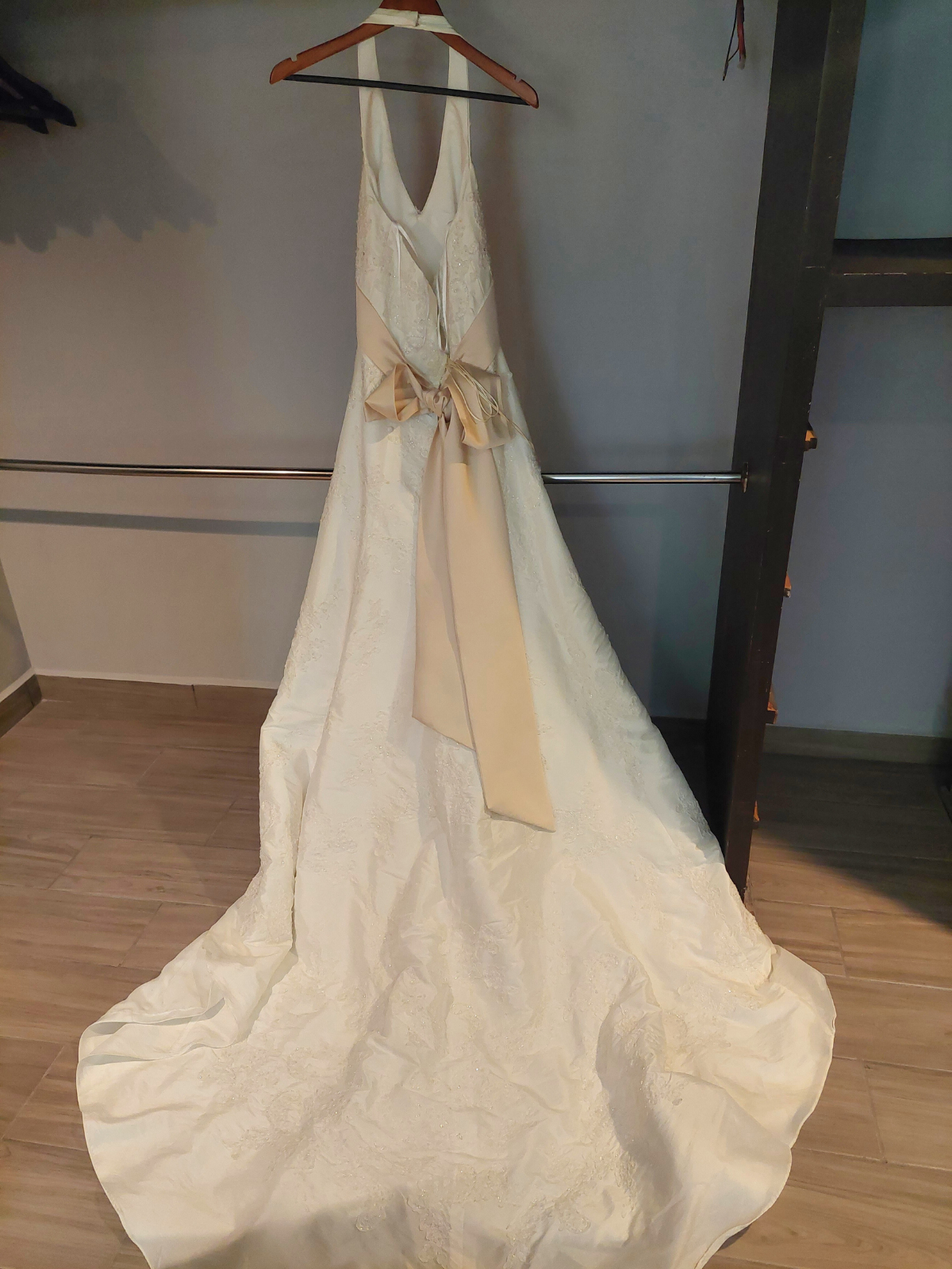 Vestido marca Picchelina talla 12 español, mexicano 7, color beige con moño atrás y sujetador de colaboración, ajuste en cintura y busto, con cristales swarovski. Realmente bello