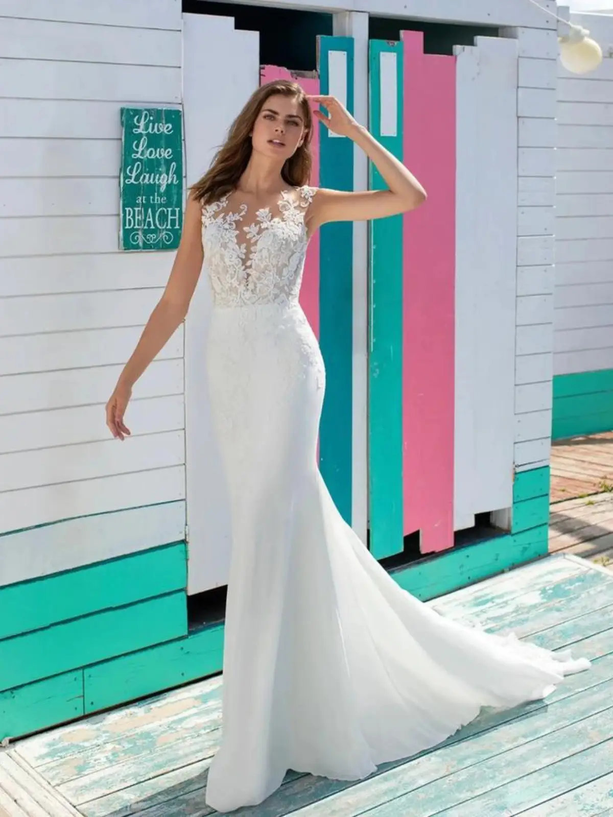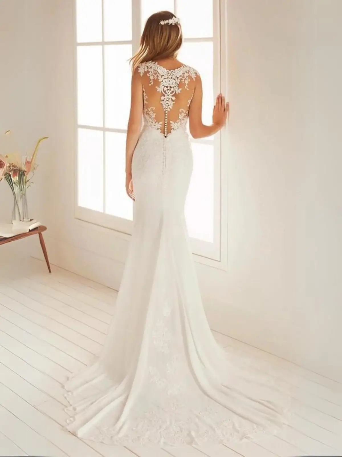 Elegante con encaje que puede funcionar para una boda fresca en meses cálidos