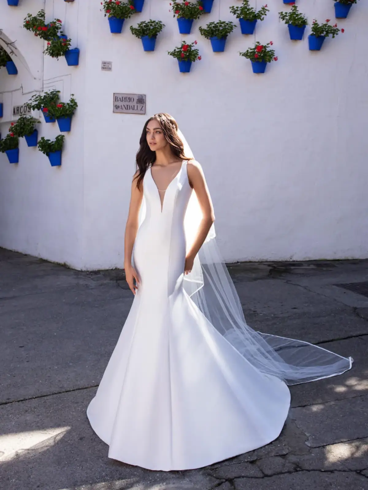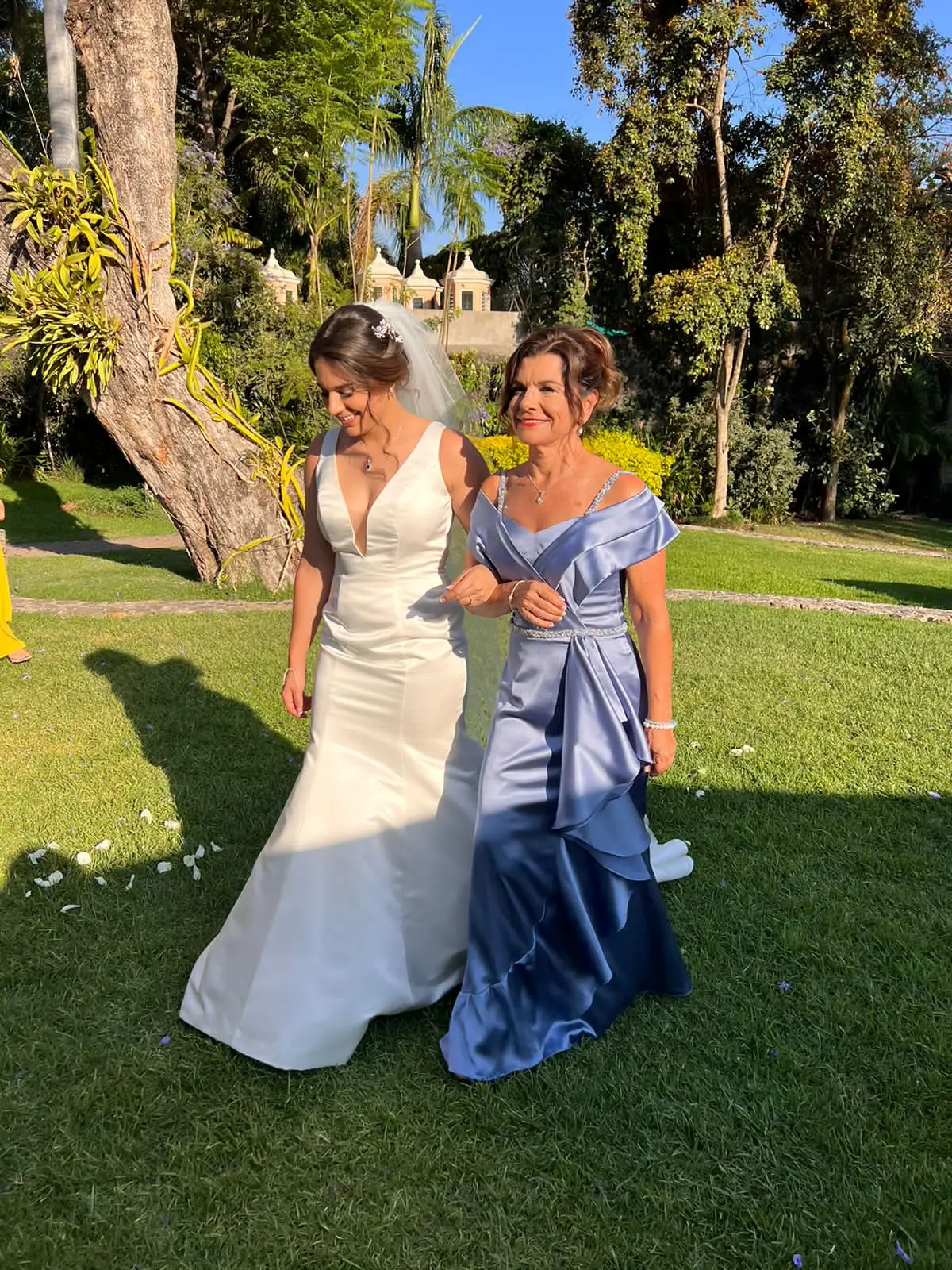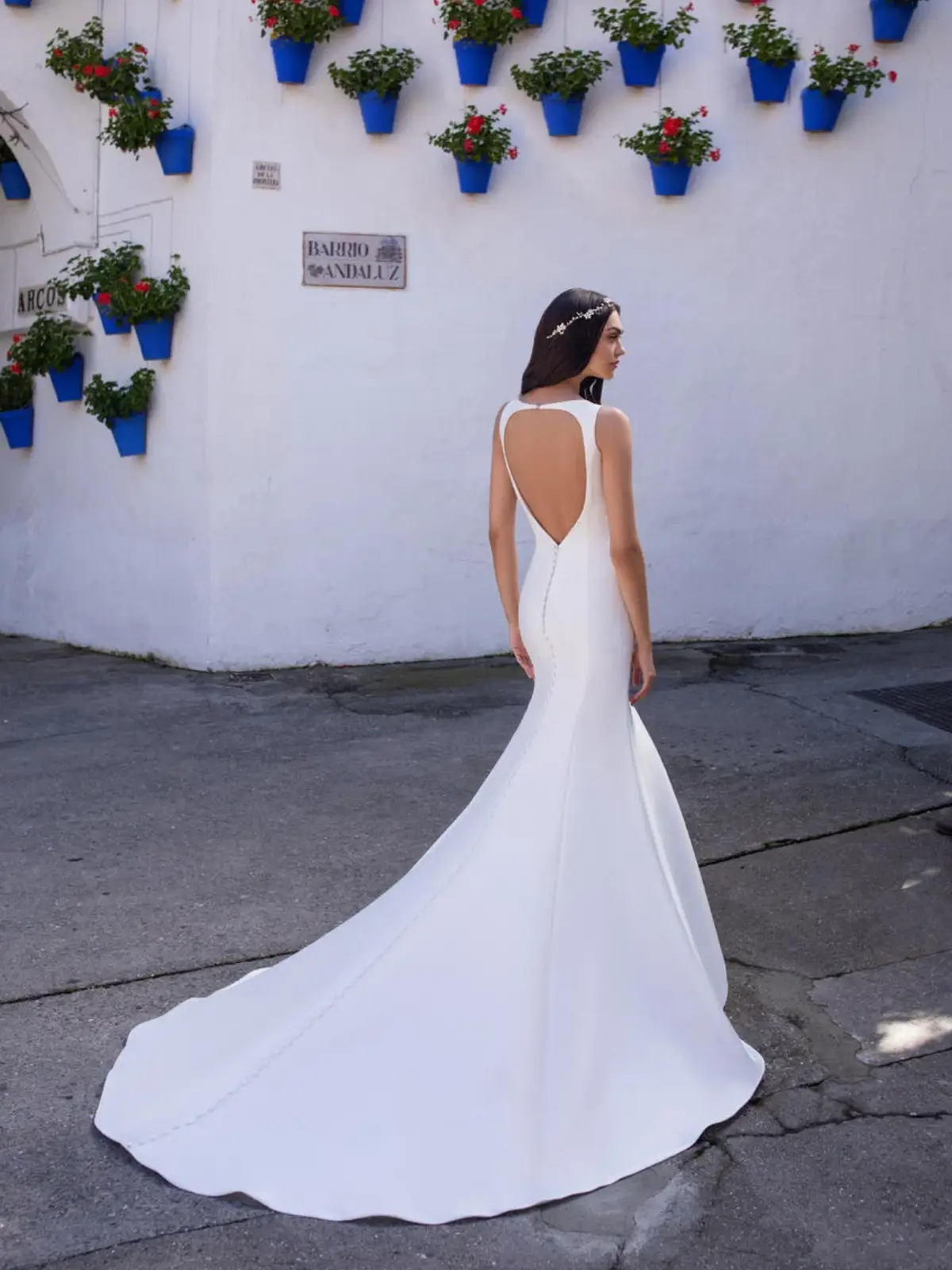 Vestido hermoso corte de sirena, muy cómodo y elegante con botones por toda la parte de atrás de la cauda y espalda abierta en forma de círculo.