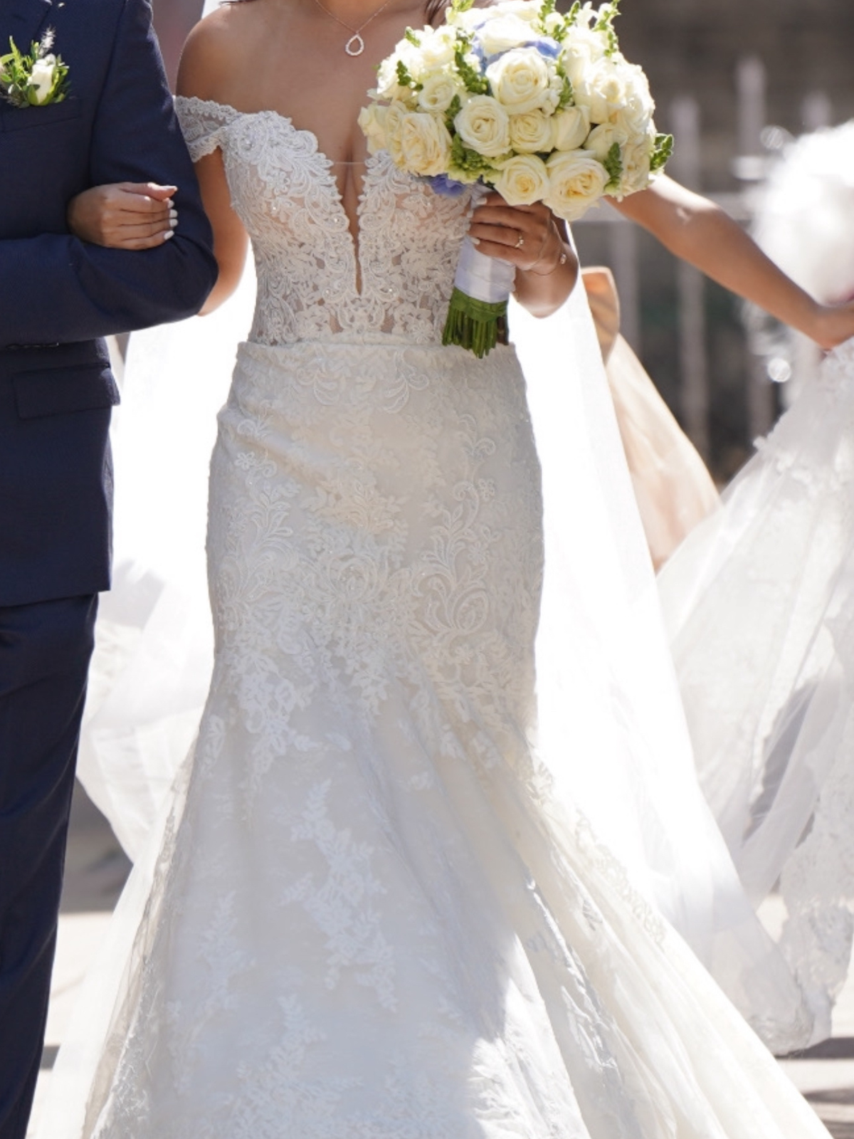 Está precioso, hace ver bonita figura y tiene muchos detalles de encaje. Está en perfectas condiciones, la única modificación que tiene fue del largo. Además es convertible porque tiene mangas caídas removibles.
