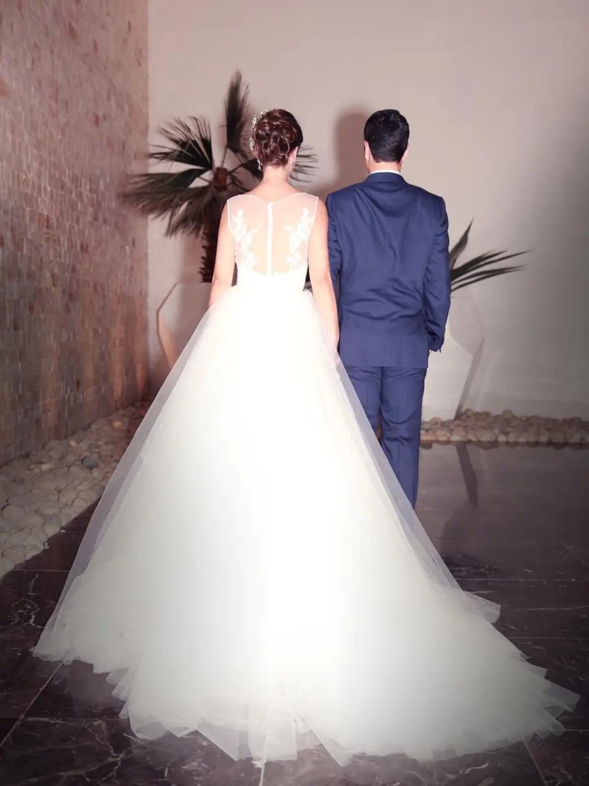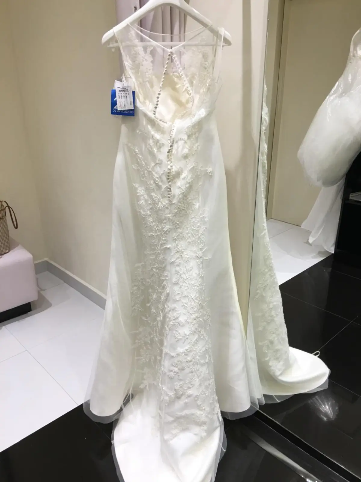 Vestido de novia que puedes usar de 3 maneras, con falda, con un cinturón o solo. Hace una silueta super bonita, muy cómodo, se uso una sola vez.