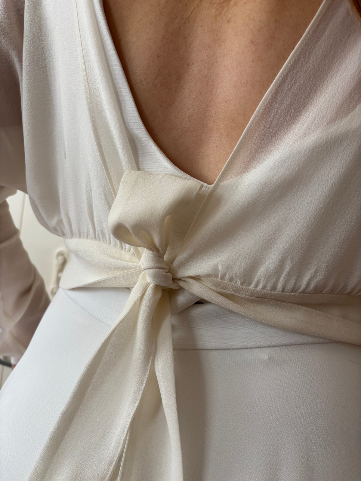 Vestido de novia de tres piezas. Falda, camisa de manga corta y camisa de manga larga. Es perfecto y ligero.