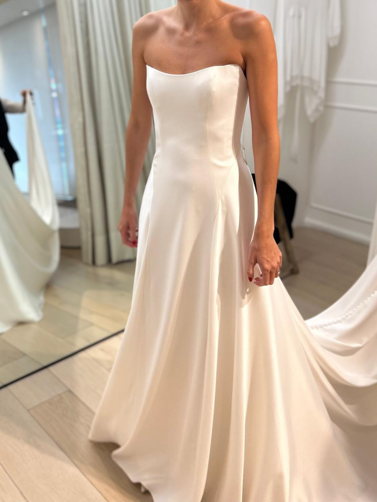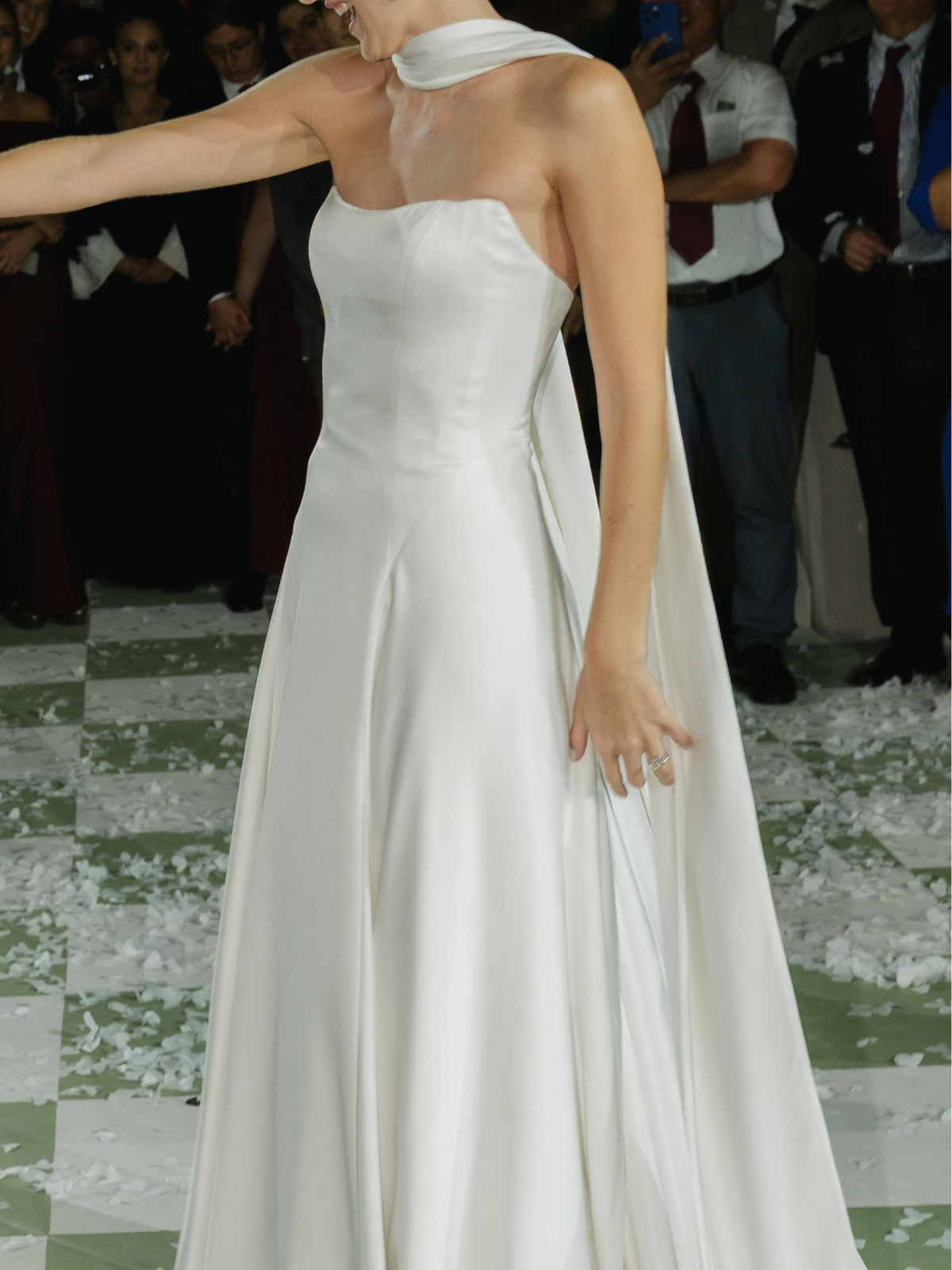 Vestido de seda con estola, strapless y atemporal. Está intacto y super lindo