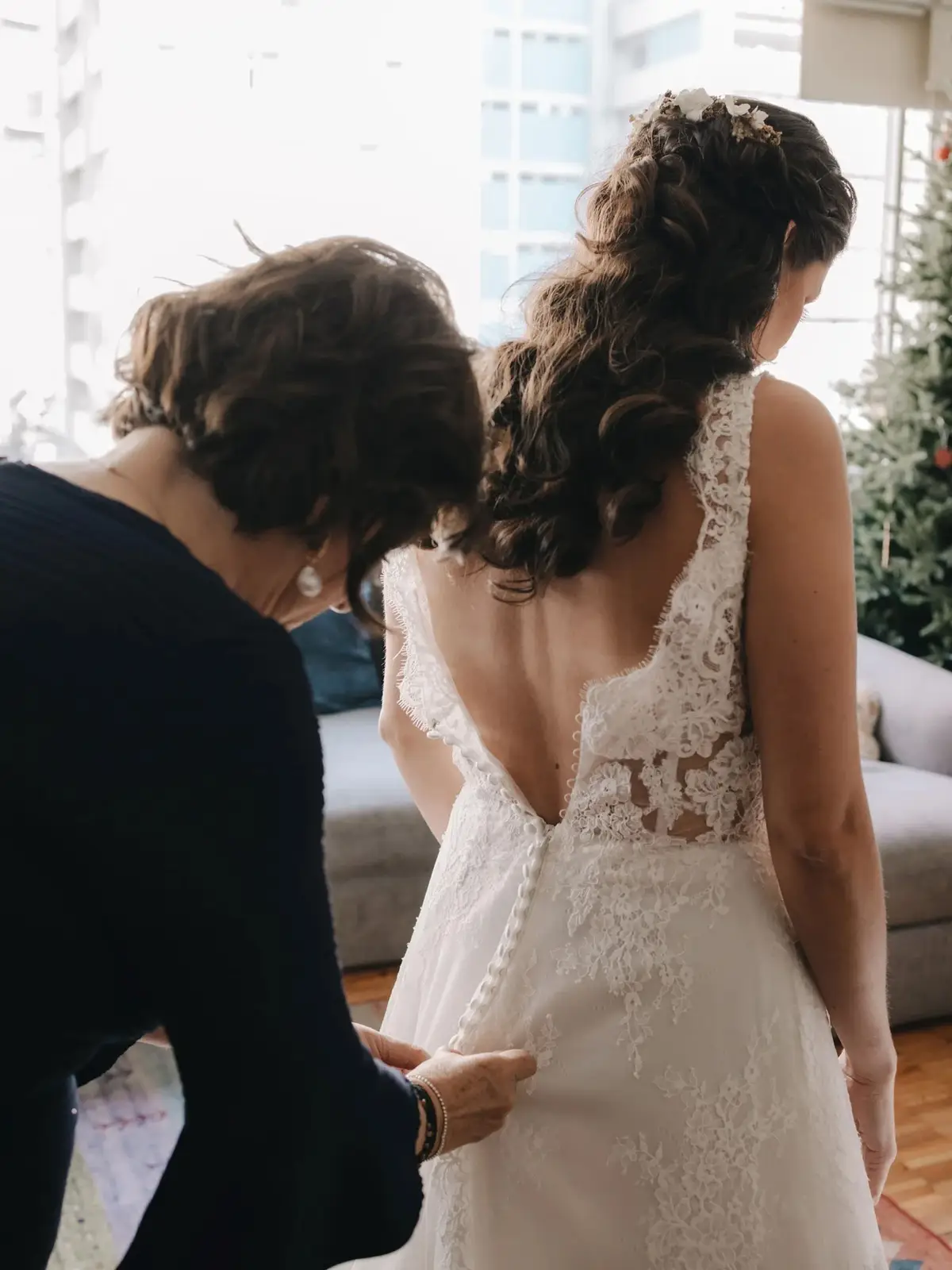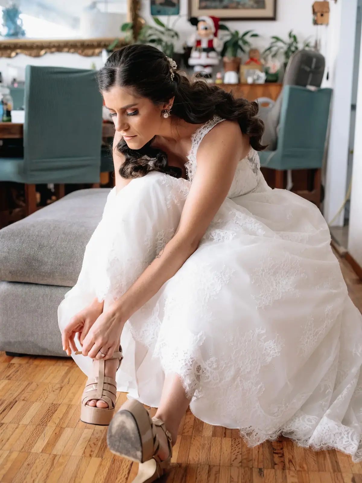 Es un vestido con un solo uso, lo compre en Tul le blanc. Es de tirantes con encaje y el escote en forma v, la espalda es transparente con encaje y toda la cola tiene también encaje sutil, tiene botones en la espalda, se me hace un lindo de talle. Es cómodo, no se te cae, se ajusta perfecto.