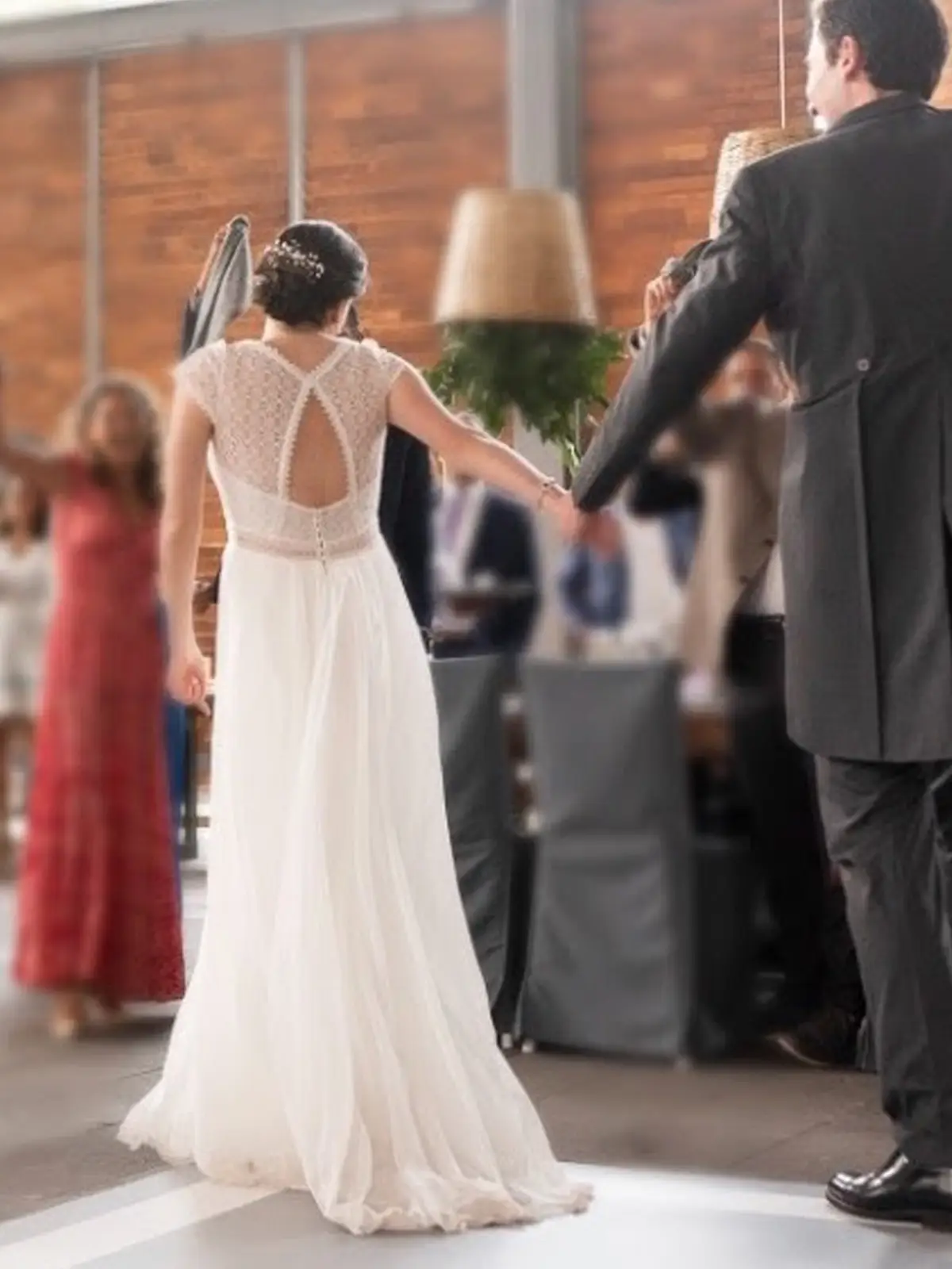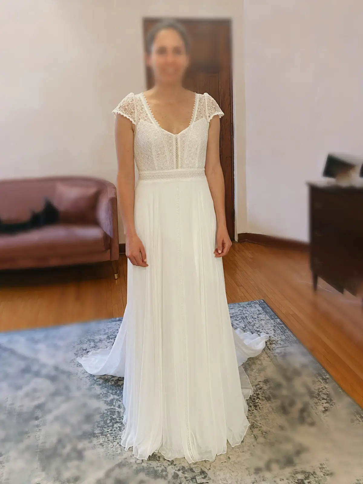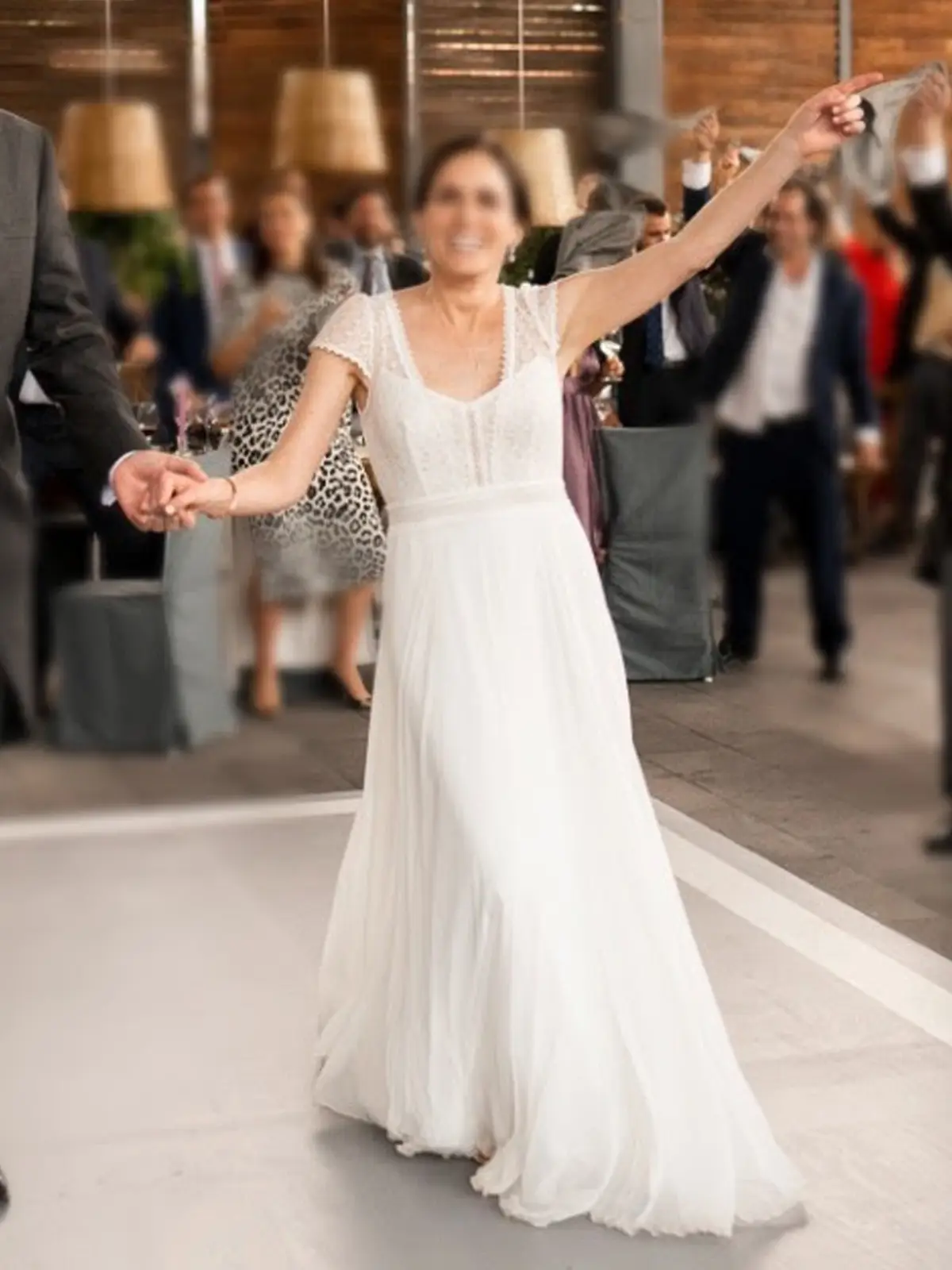Un vestido elegante, fresco y super cómodo. En color Ivory con cuello en V por delante y con la espalda abierta – crea una figura ideal! Los detalles de encaje le dan un toque muy distinguido y a la vez suaviza el vestido. La falda cae con mucho movimiento. ¡Te hará muy feliz!