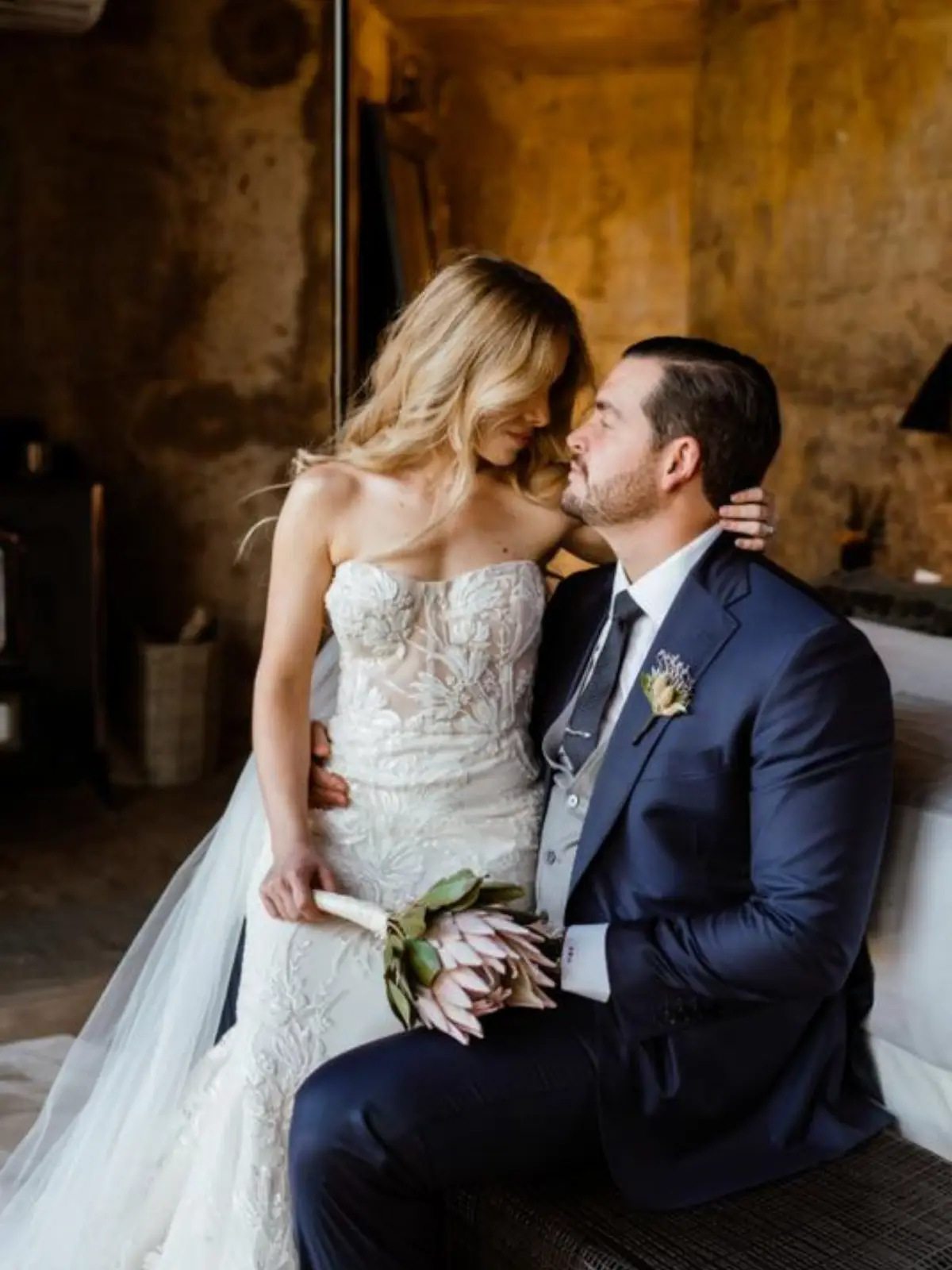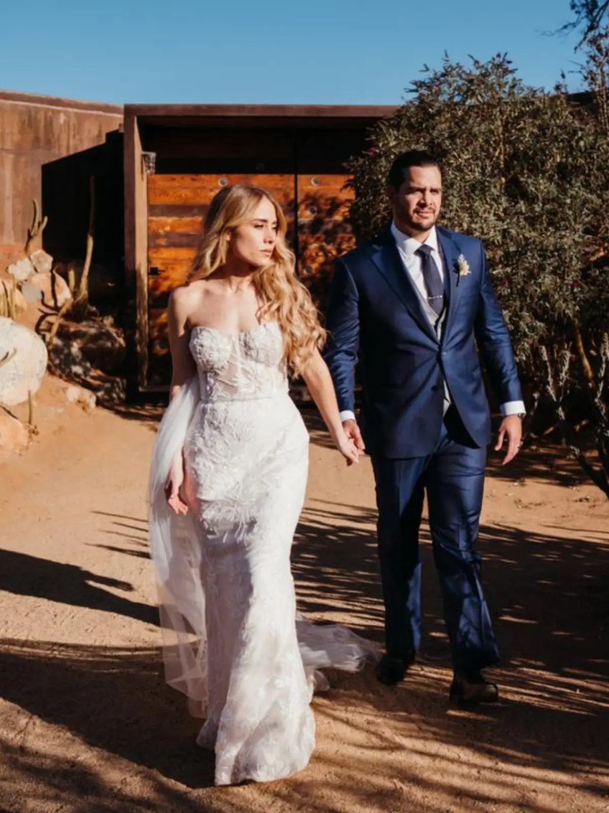 Vestido corte fit and flare, es strapless con opción de ponerle unos tirantes súper ligeros y cómodos, la falda tiene una caída súper ligera y natural, resaltando la cintura sin ser corte sirena. La parte superior del bustier, es semi transparente, lo cual deja un detalle súper lindo en contraste con la piel. Las copas le dan una forma muy linda al busto sin tener que usar brassiere. Lleva un emcaje ligero en la parte superior y en la falda. Es muy sencillo y tiene poca pedrería y es muy ligera. El tono de todo el vestido es ivory.