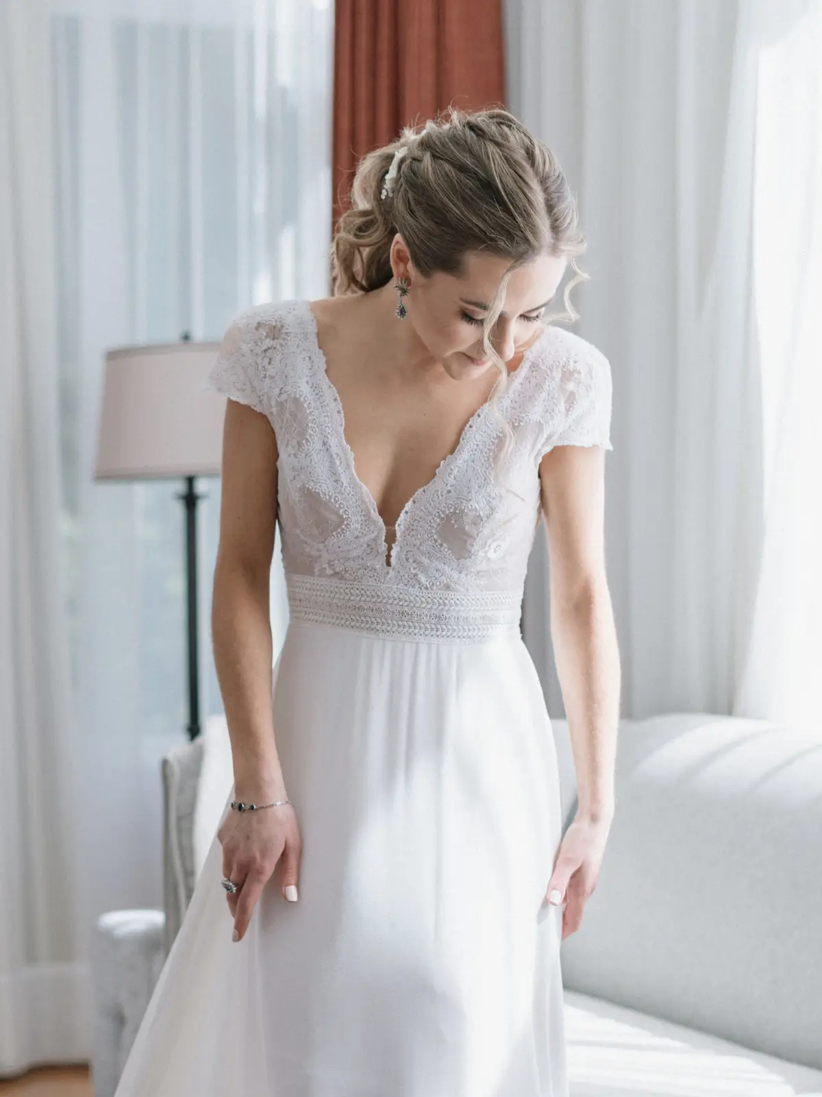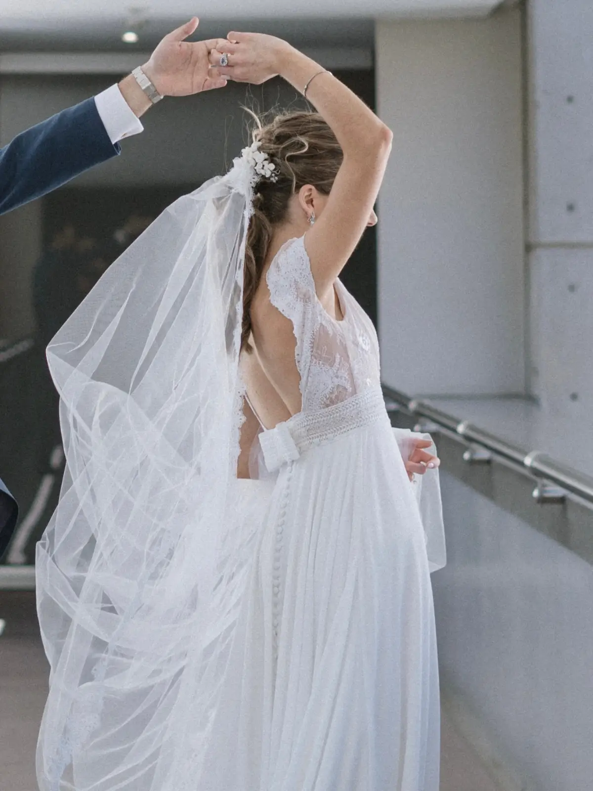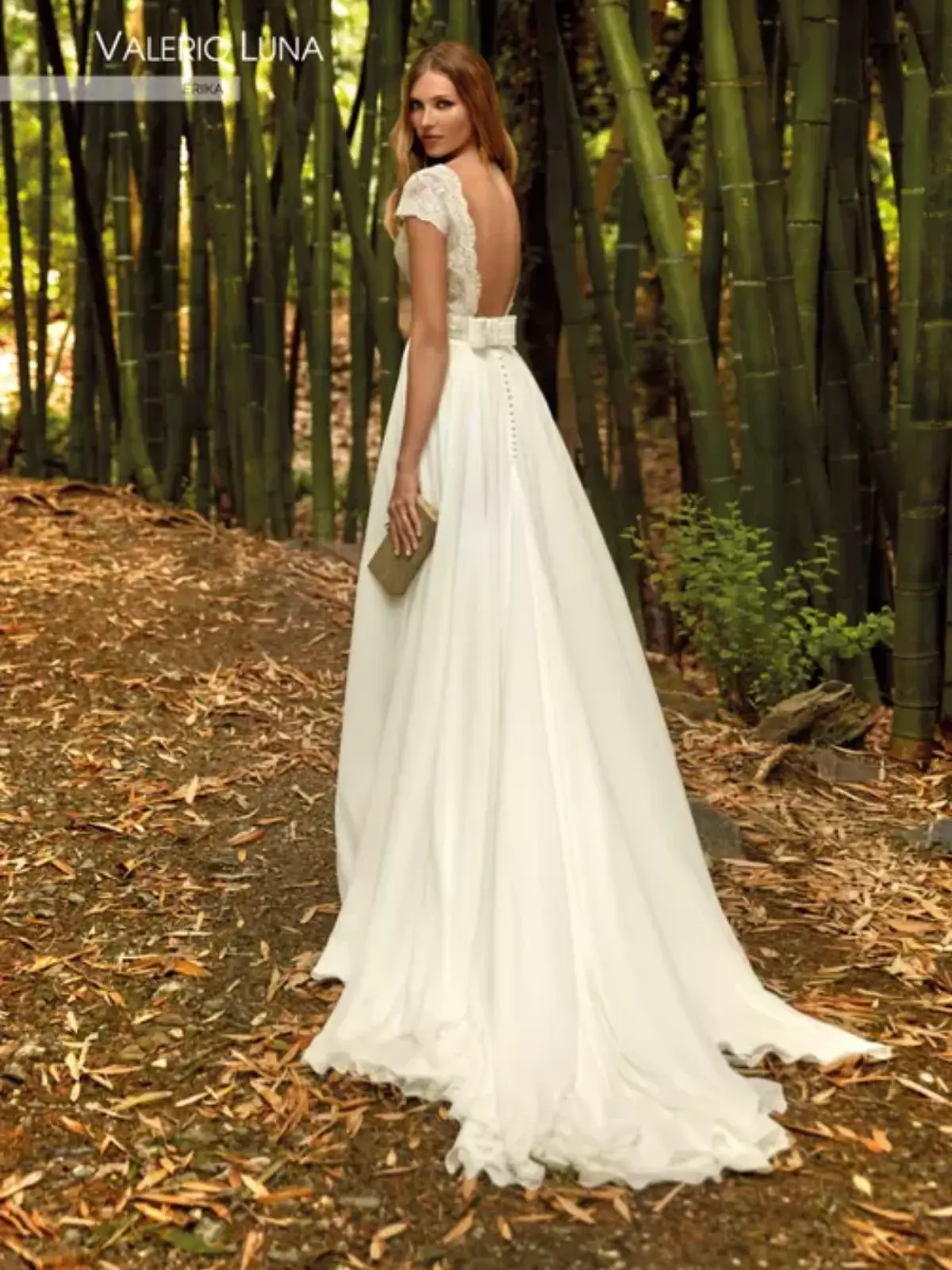 Vestido ligero en corte A con espalda abierta. Incluye botones y un moño pequeño en la parte trasera.