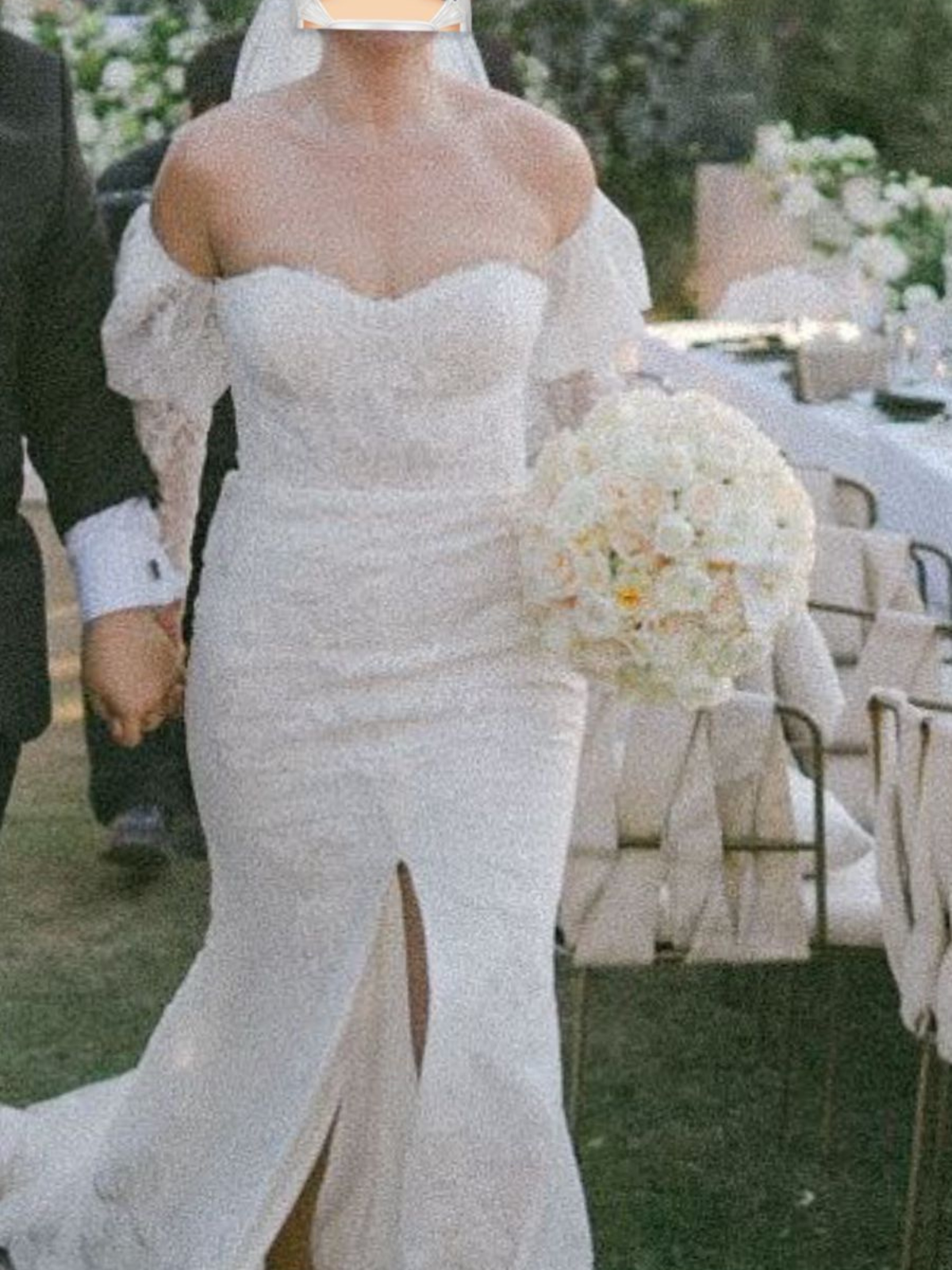 El vestido incluye dos accesorios súper lindos: unas mangas del mismo encaje del vestido y una chaqueta muy similar al vestido