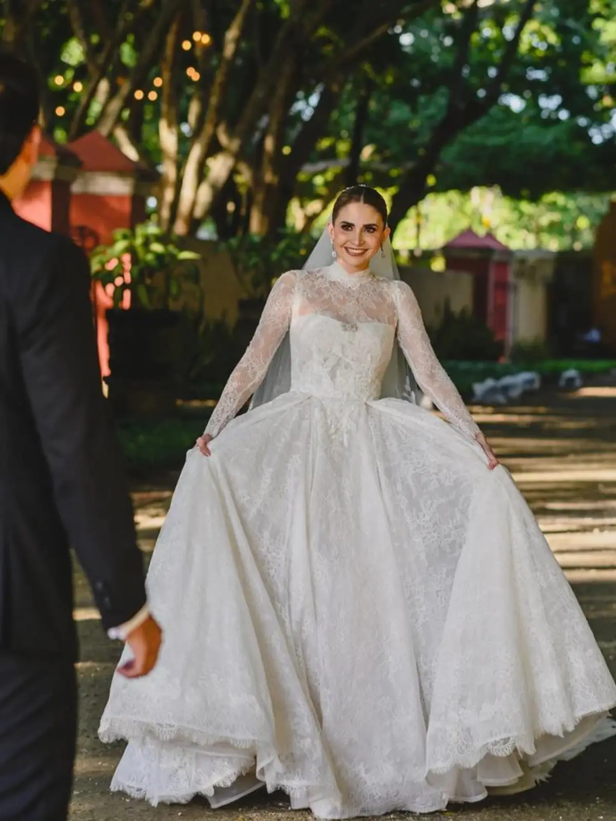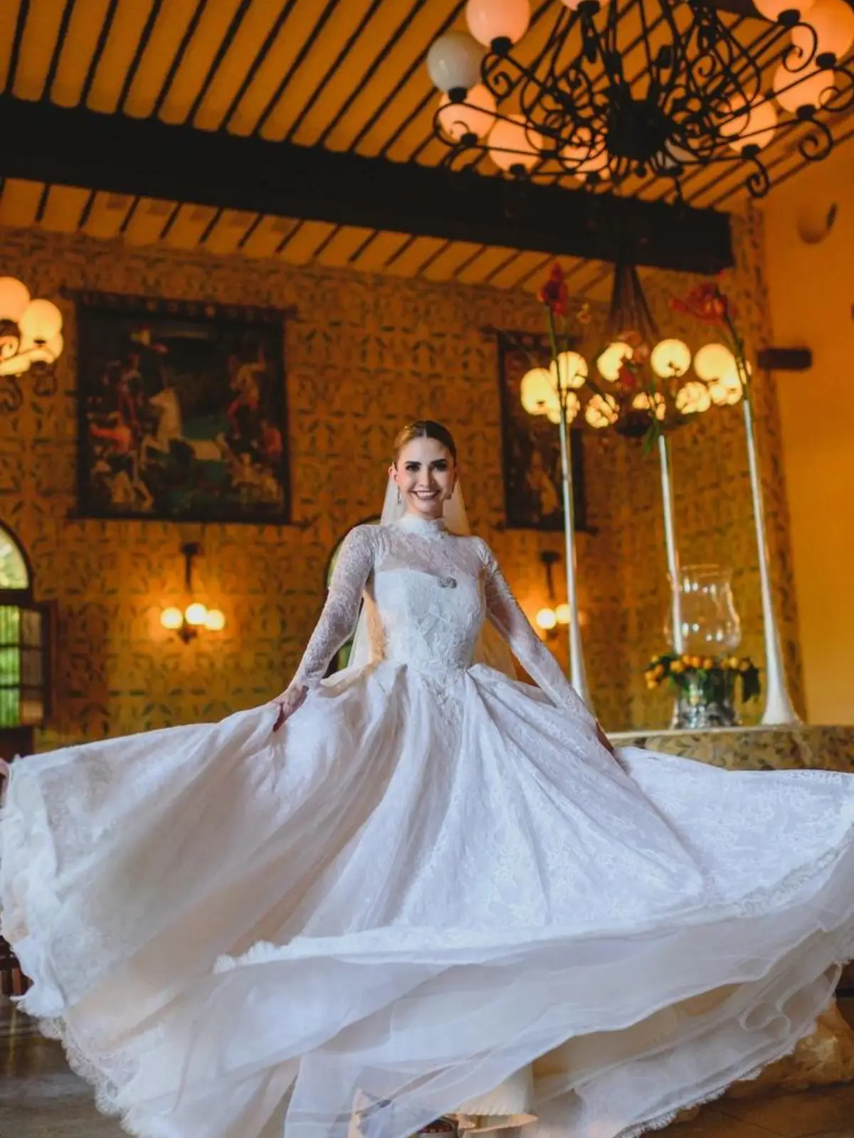 Vestido largo con escote en V cursi sisado con drapeado y espalda escotada en U profunda con detalle en hamaca en sesgo, con corte en la cintura y falda silueta sirena con drapeado y abertura en la pierna todo de crepe stretch color offwhite