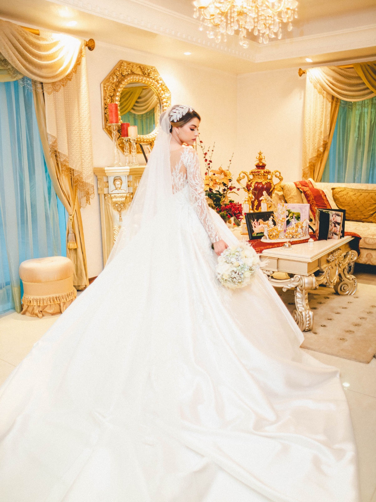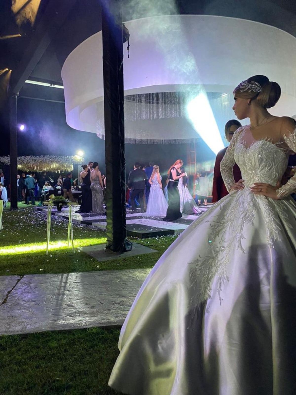 Vestido diseño princesa , tela fina , detalles de exportación de Israel , tiene cola y cuenta con un botón para hacer la bolsa corta.
