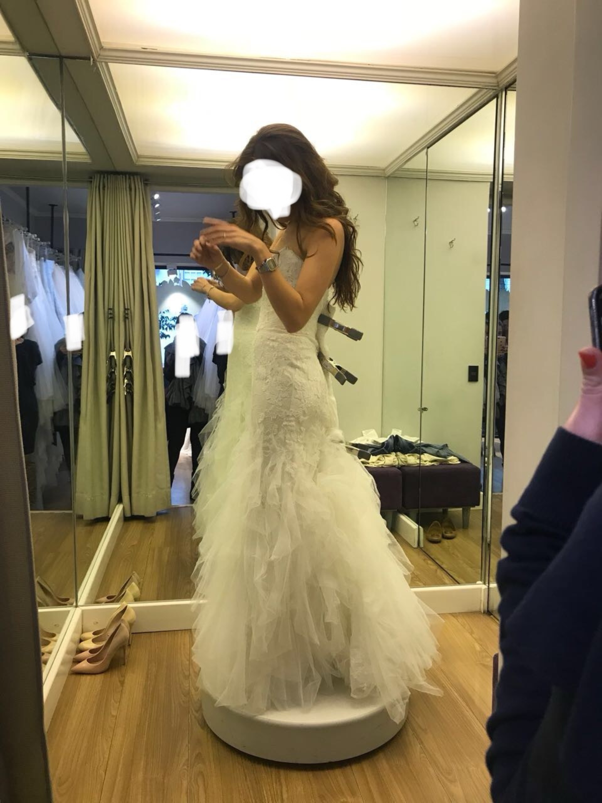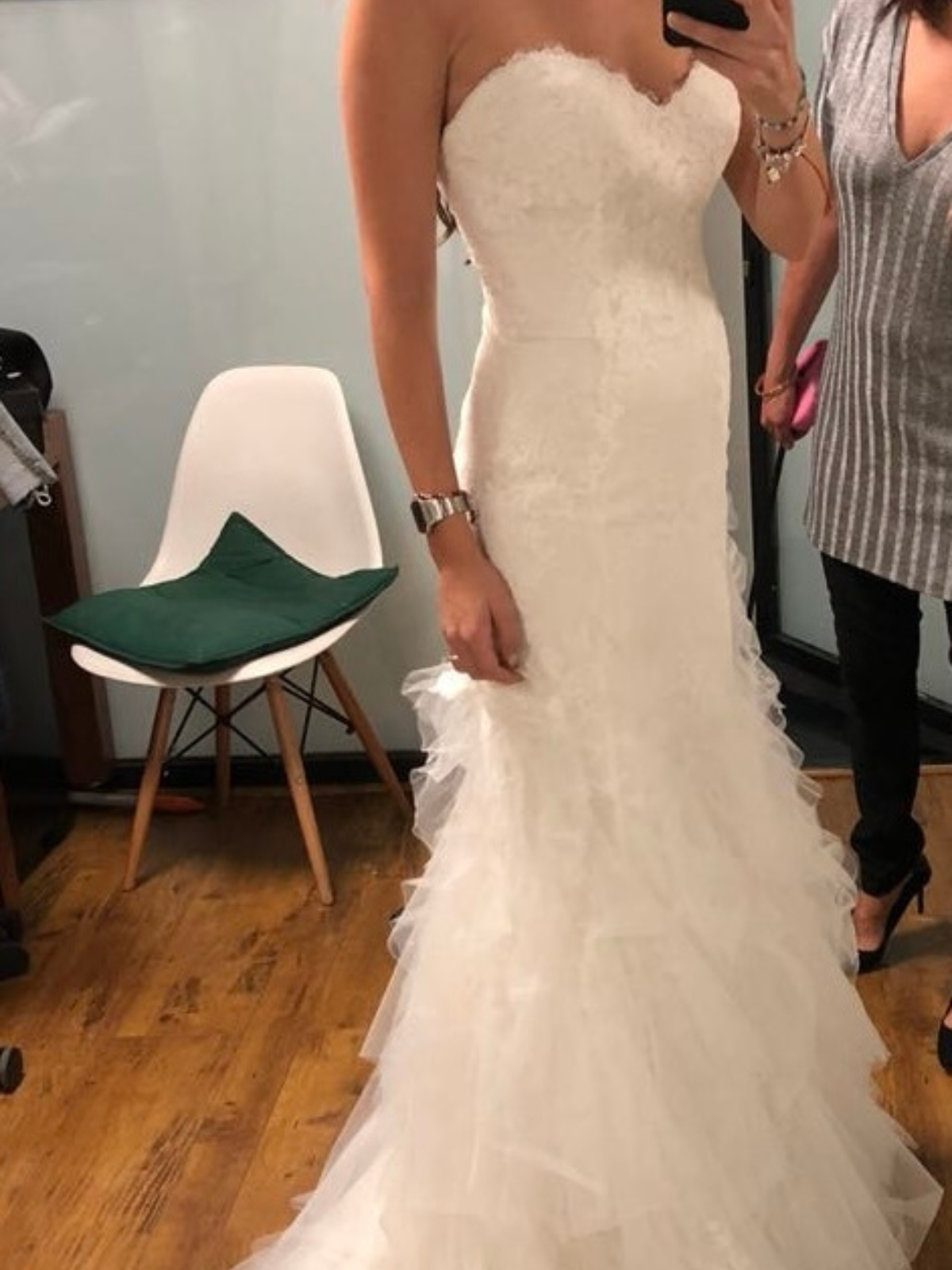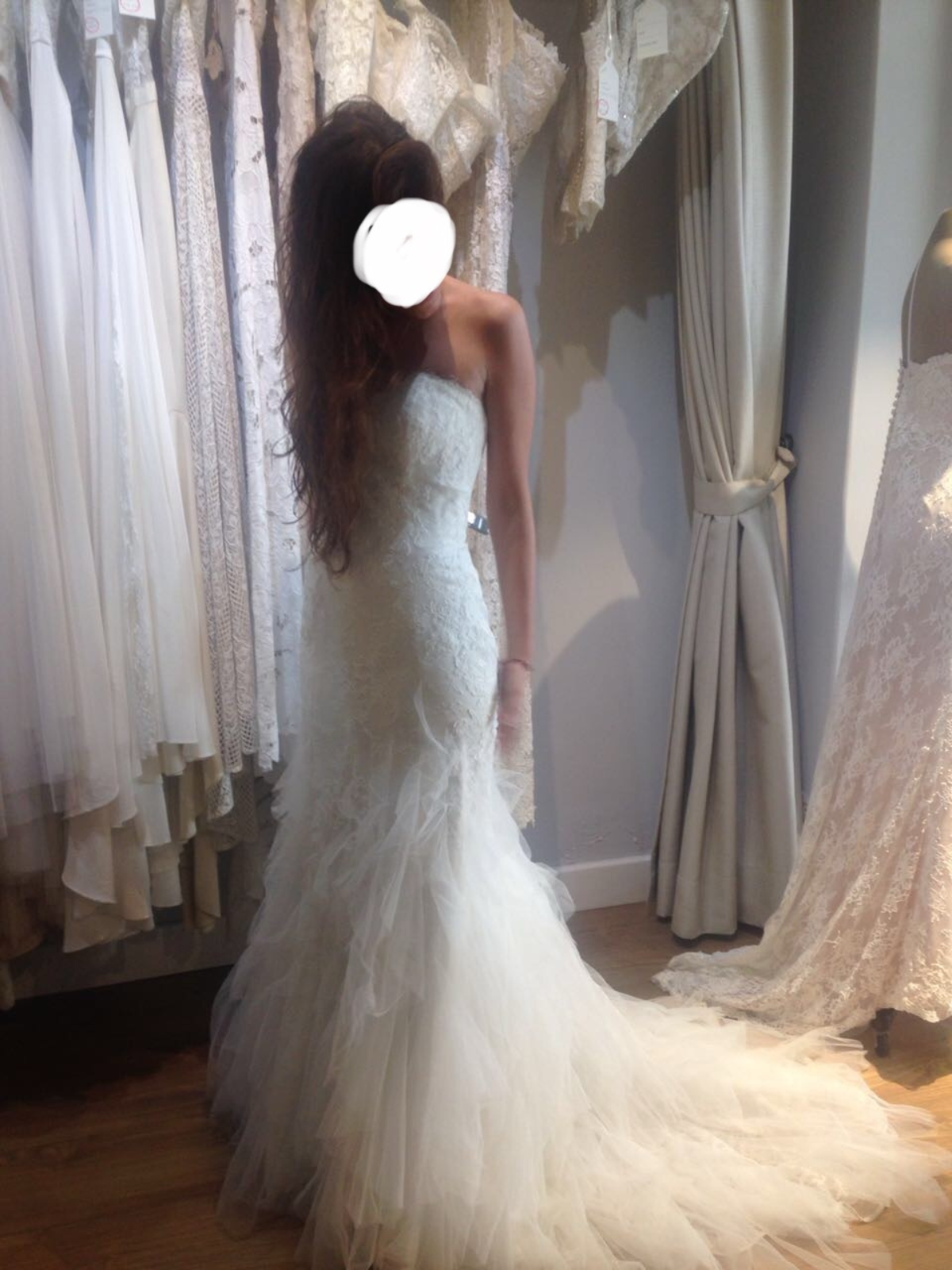 Precioso vestido de novia en corte sirena con encaje y cola de tul