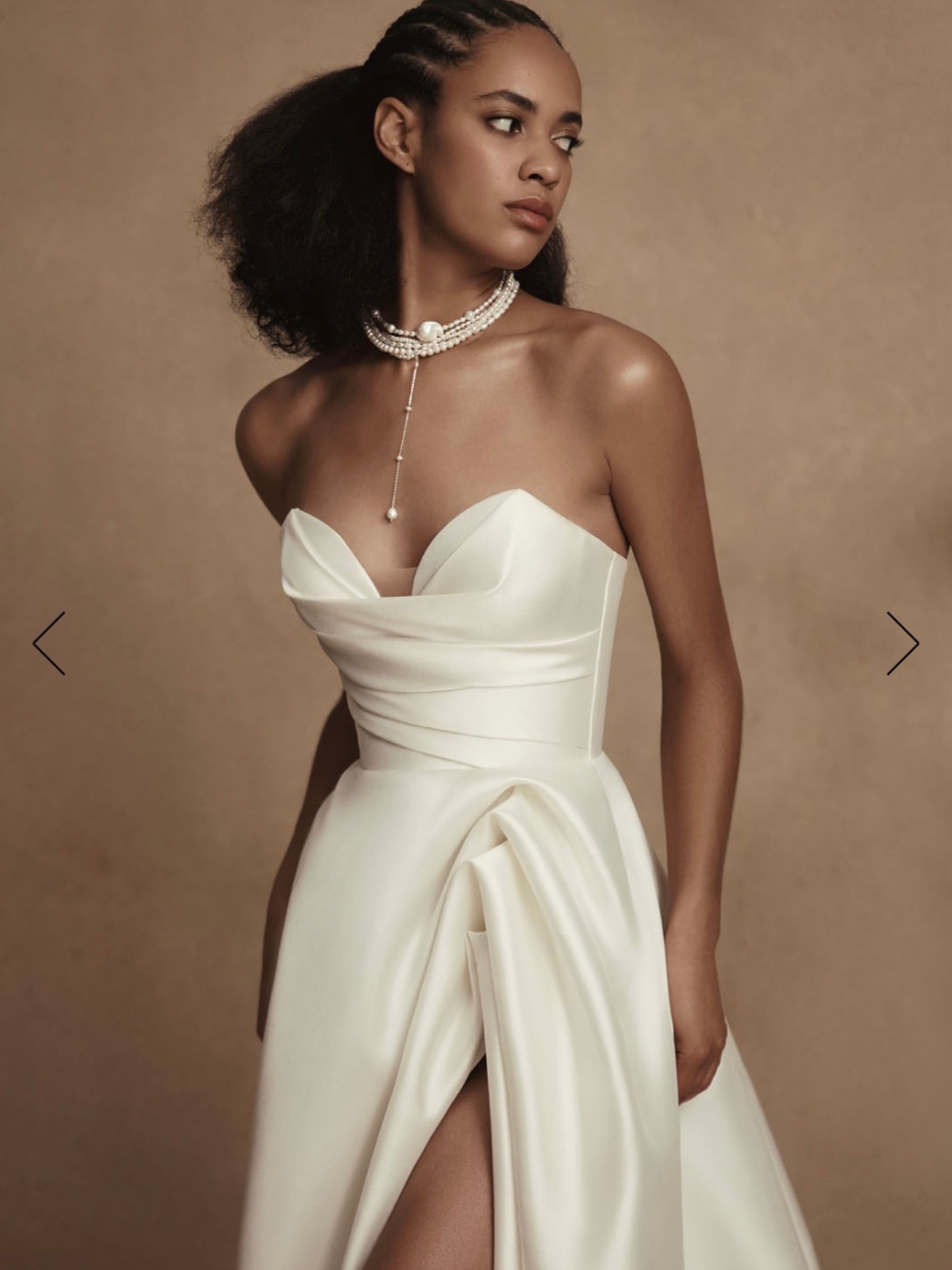 Un vestido clásico y elegante, con una abertura en pierna que lo hace diferente.